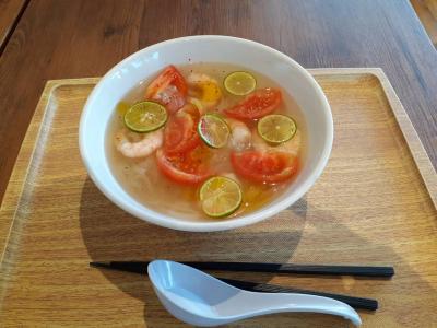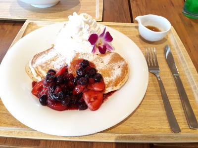 メニューは一番人気はハワイアンプレート(1580円)でしたが、暑いので冷製フォー(1080円)とベリーパンケーキ(1380円)を注文してシェアしました。