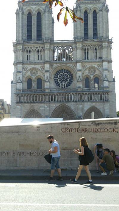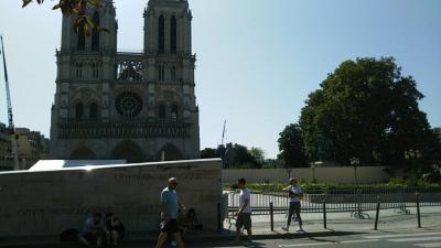 火災で焼けてしまったノートルダム大聖堂ですが、寺院周辺は閉鎖されていて中には入れないようで外から観賞しました。外観はそれほど損傷を受けていないように見えます。