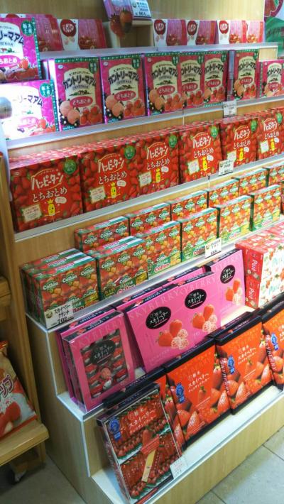 お土産もたくさん種類があり、栃木の土産のいちごのお菓子のコーナーもありますが、栃木だけでなく福島の名菓もあります。