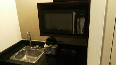 ミニキッチンに電子レンジもあります。シャワールームにドアがあるので使いやすいです。- 旅行時期