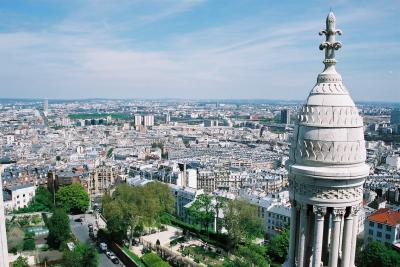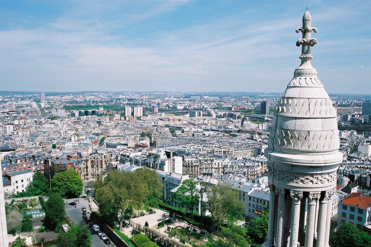透明のエスカレーターが上がっていくにしたがって、パリの街が一望できます。