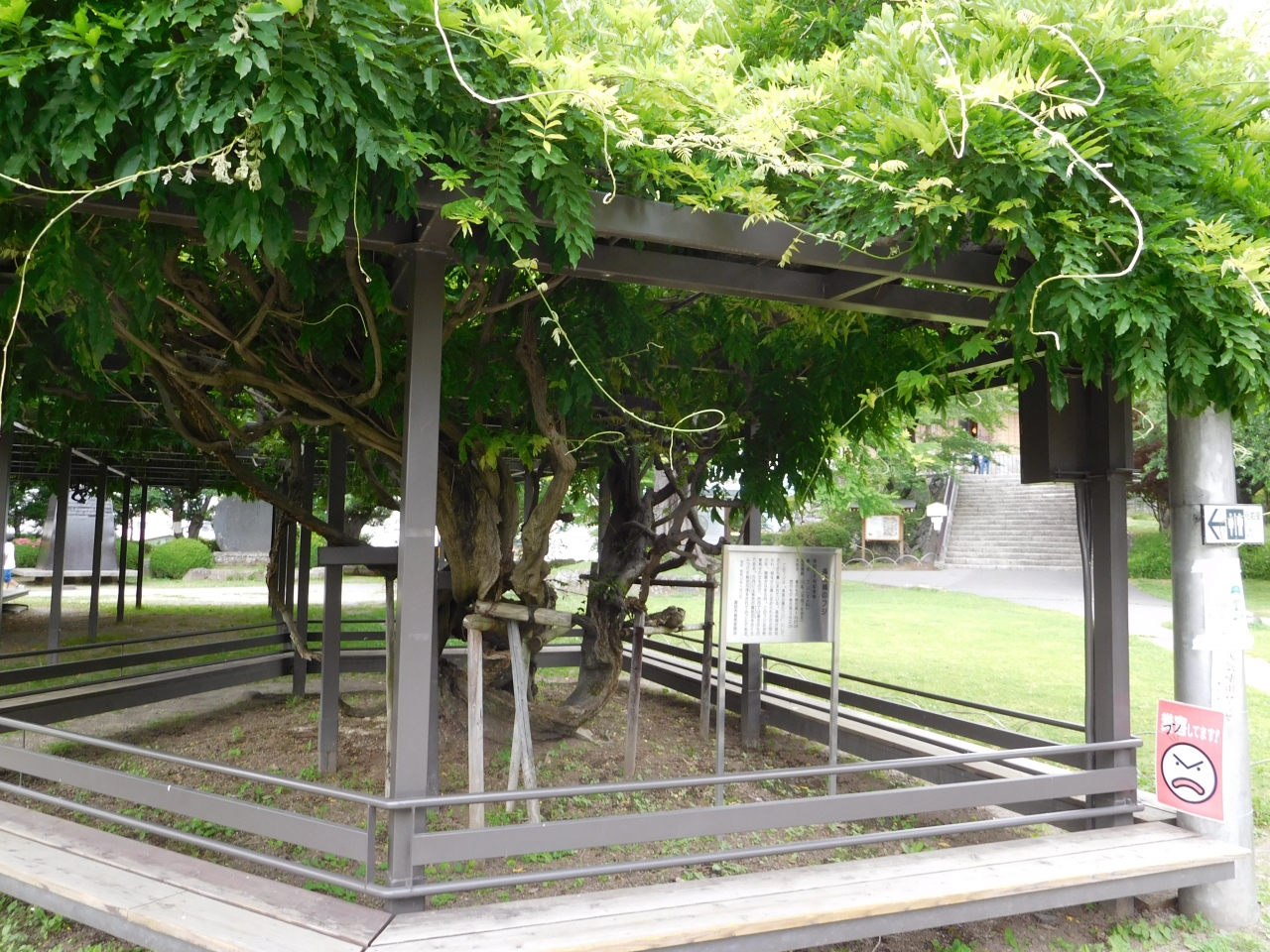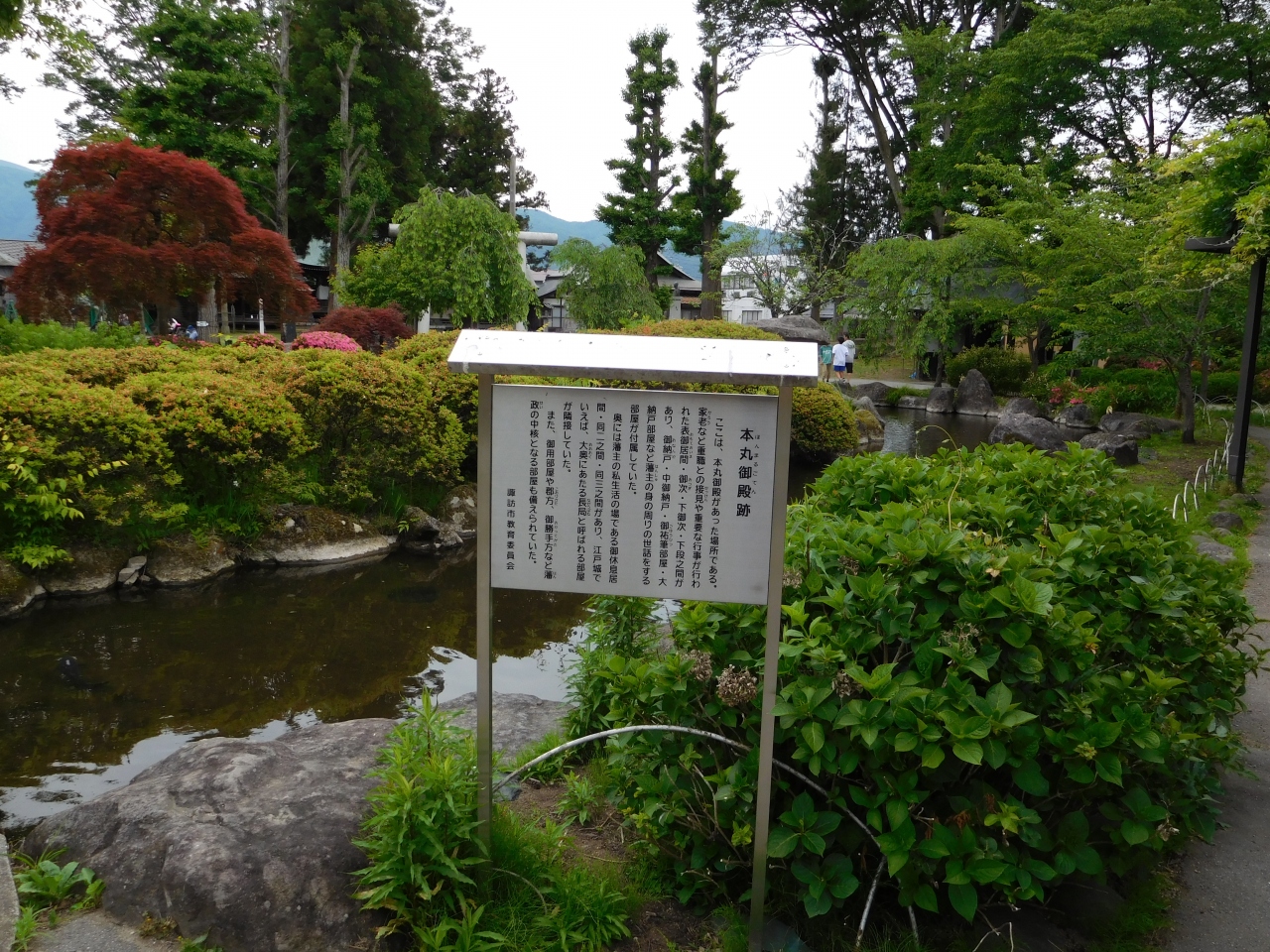 上田城跡公園側から駅に向かって歩いて行く場合は、市役所前で右折すると、上田高校へと辿り着きます。関ヶ原の合戦の後、真田信之がこの場所に居館を構え、現在は表門と土塀、堀が残っています。とても歴史の感じられる雰囲気でした。道路沿いには、ライトアップ用のライトも設置されていました。