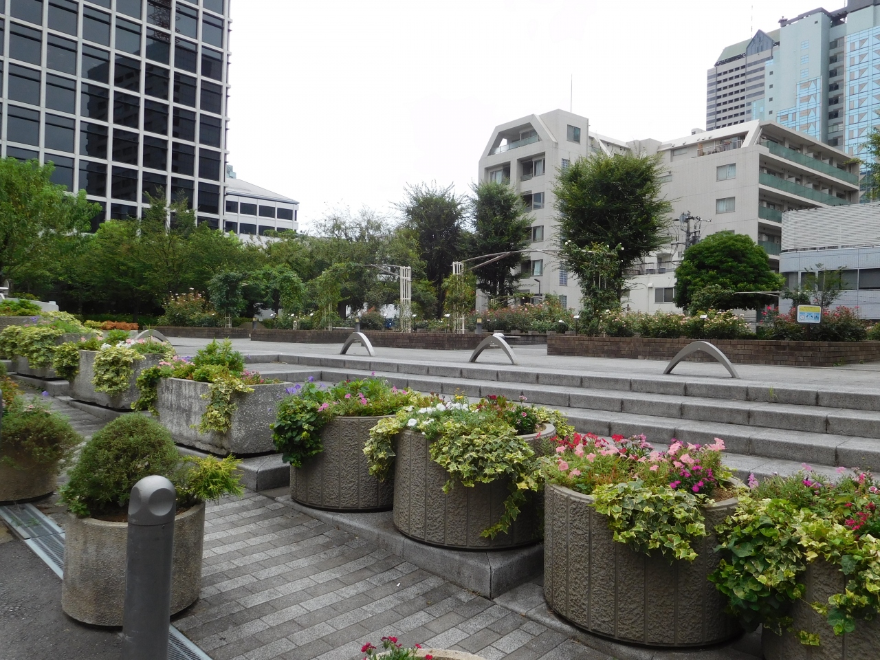 東急プラザ銀座や、銀座ファイブに挟まれるような位置にある公園です。割とコンパクトながらも緑がしっかりあり、ベンチなどの休憩スペースもあるので、休憩がてらに利用している人が多い印象でした。奥の方には、岡本太郎の個性的なデザインの「若い時計台」があり、なかなか存在感がありました。