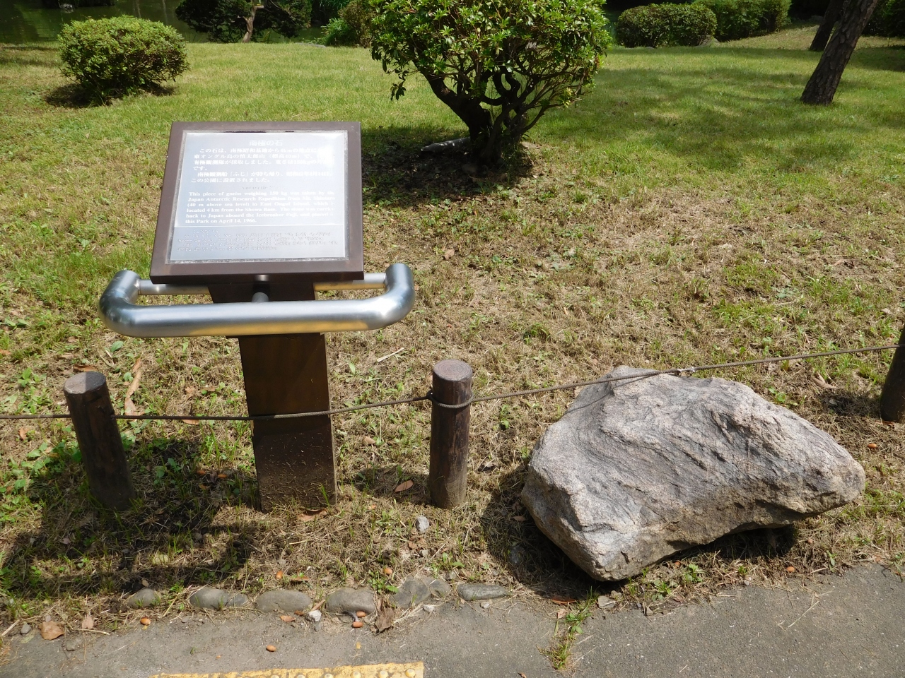 心字池の近くに柵からはみ出すように石が置いてあります。説明板が無ければ、ただの大きめの石と思い、通り過ぎてしまいそうです。150キロもあるので、重量感のあるずっしりとした石でした。隣には、古代スカンジナビアで使われていたルーン文字の石碑があり、こちらの方が存在感がありました。