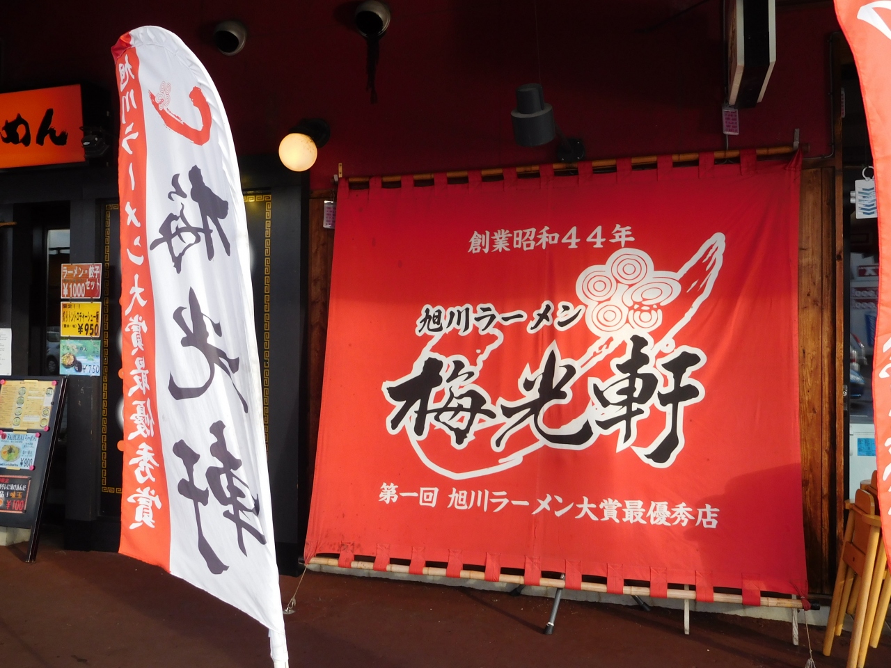 あさひかわラーメン村の一番端にあるお店で、「第一回旭川ラーメン大賞最優秀店」と書かれた赤い幕が目印です。しょうゆラーメンと、味噌ラーメンを注文しましたが、美味しかったです。店員さんも気さくに話しかけてもらえたり、対応が親切で良かったです。