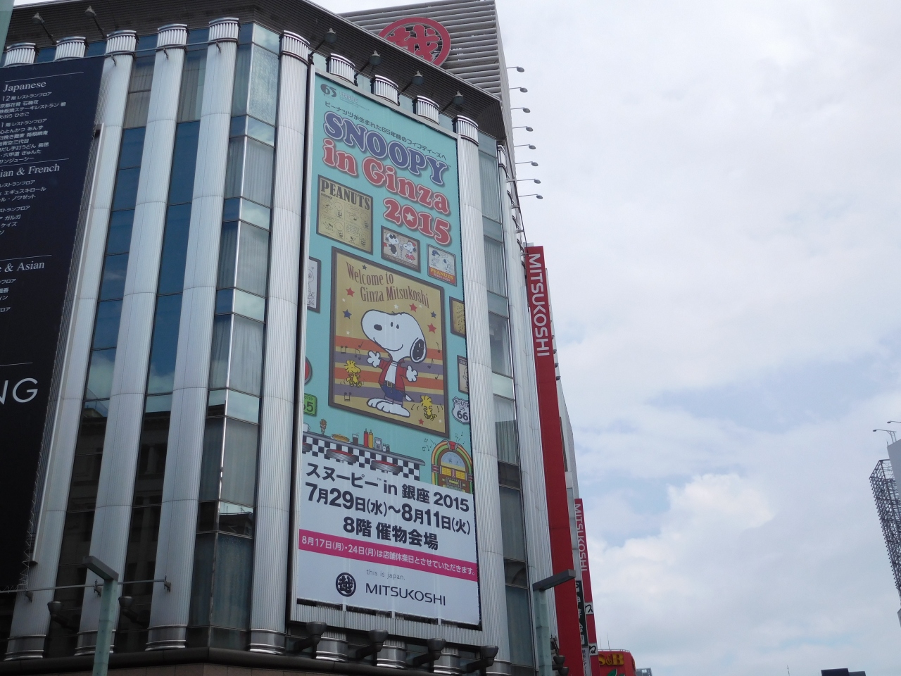 銀座三越の催物会場で、毎年夏の時期に開催されているイベント「スヌーピーin銀座 2015」に行ってきました。今年で17回目の開催で、毎年違ったテーマになっています。夏休み期間中という事もあり、会場はかなり混雑していました。地下鉄銀座駅から直結しているので、便利です。1階のフロアは、アジアからの観光客でかなりごった返していました。地下2階のフロアは、手土産に出来るお菓子やスイーツが充実しているので、重宝します。