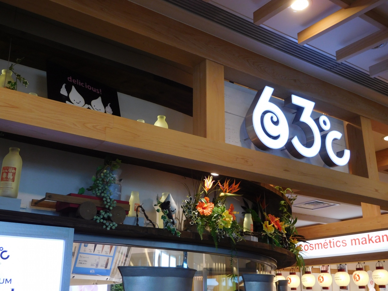 4階のスカイアリーナ近くのエスカレーター付近にお店があります。エスカレーターの近くでソフトクリームを食べている人が結構いたので、どこにお店があるんだろう?と見渡してみたら、目の前にありました。「63℃」の温度で30分低温殺菌されたミルクを使ったソフトクリームで、濃厚でもさっぱりとした味で美味しかったです。6種類のソフトクリームと、4種類のコーン(カップ)から選べました。