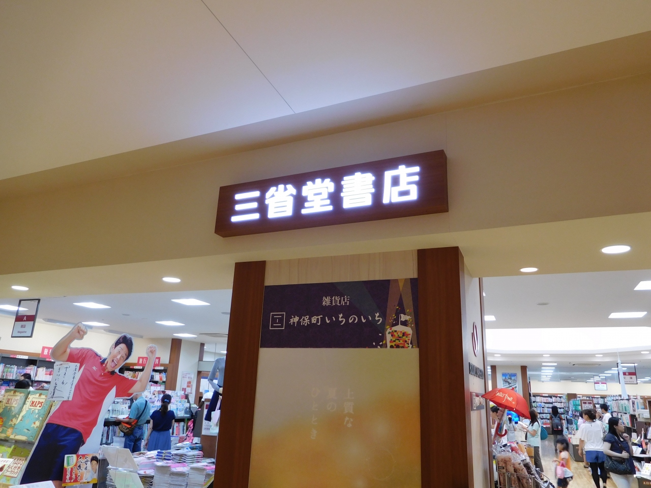 地下鉄 日本橋駅から直結し、地下1階から3階まである大型書店です。平台に積まれていたり、本の表紙が見えるようにディスプレイしてある本が多く、とても見やすかったです。また、書籍の他にも、文具売場やカフェなどもあり、3階のギャラリーでは、入場無料の展示が開催されていたりしました。