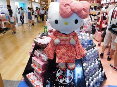 東京ソラマチ4階のエスカレーターに面した場所に、着物姿のキティちゃんがお出迎えしていました。和のティストが入った商品や、スカイツリーとコラボレーションした商品が色々と並んでいました。TAX FREEの案内もあり、海外からのお客さんの姿も多かったです。
