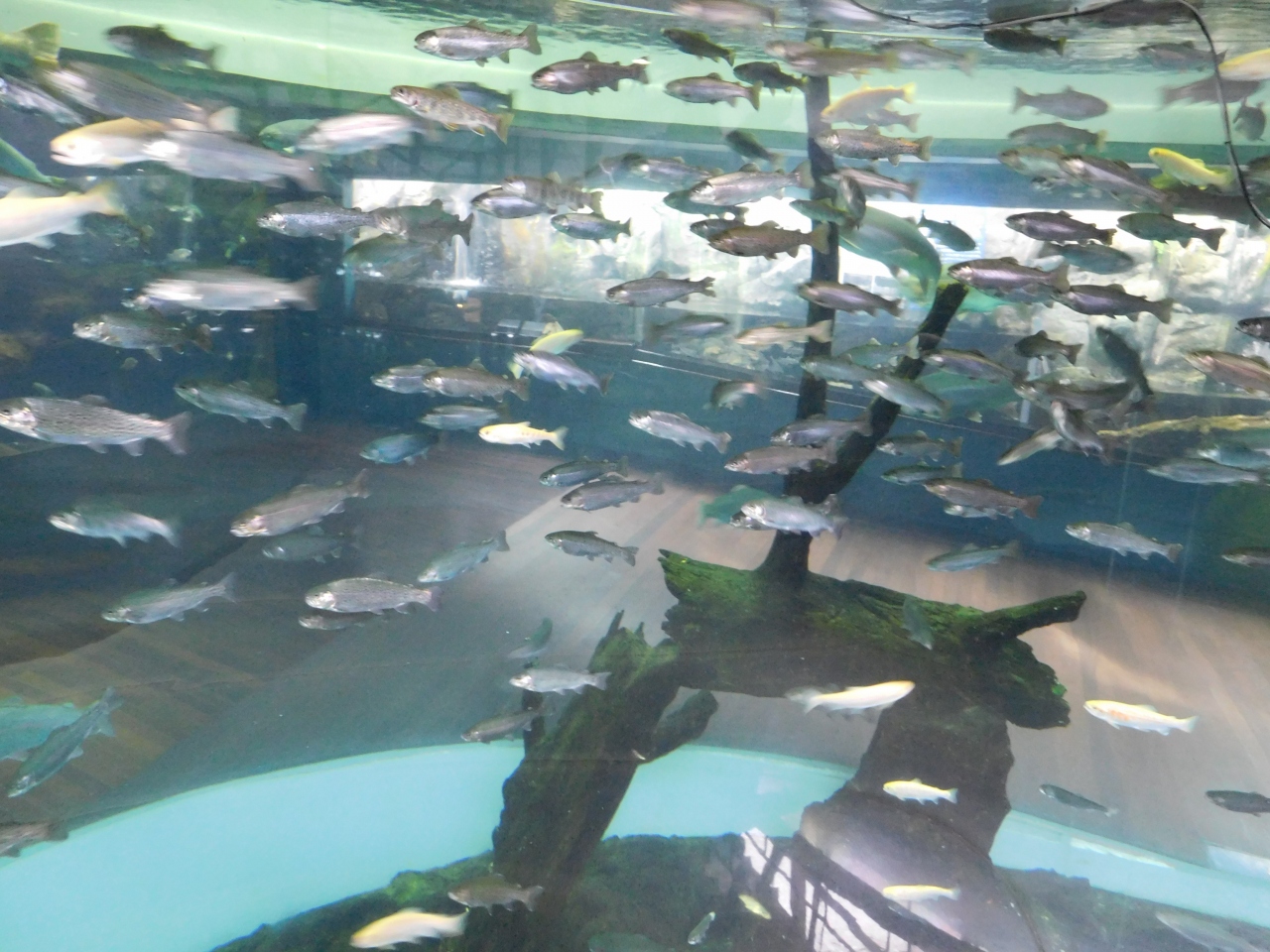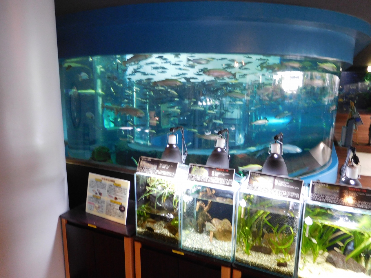 富士山の湧水を使用している、淡水魚専門の水族館です。そんなに規模が大きくないので、あまり期待はしていなかったのですが、中に入ってびっくり。中央に二重回遊水槽があり、外側に大型魚、内側に小型魚が泳いでいて、独特な世界が広がっていました。落ち着いた雰囲気で、じっくり魚が見れるように展示してあったり、ボランティアスタッフの人がエサやりをしながら解説をしてくれたり、思いのほか、じっくり見て楽しむ事ができました。水族館の外からも見える魚が、中からはガラス越しに見えたり、一つの展示をいろいろな見せ方をしていたので、なかなか良かったと思いました。