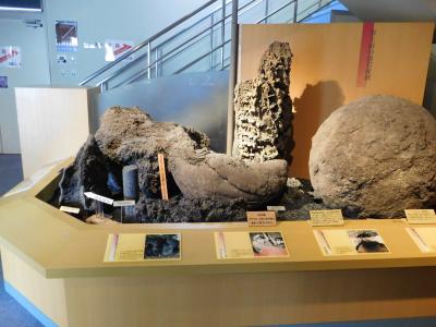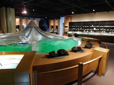 道の駅なるさわ内に、入館無料の富士山博物館が併設されている?ちょっと寄って見ようかと入ってみました。どこかのテーマパークに紛れ込んでしまったかのような恐竜のお出迎えの後、富士山模型の周辺に鉱石など、「石」に関係した展示があり、歴史や解説などのコーナーがありました。出口は、パワーストーンなどを販売する売店に繋がっていました。