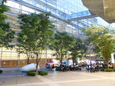 大小様々なイベントホールを兼ね揃え、舟形の巨大なアトリウム空間が広がっていて、とても開放的な造りになっています。地上広場に出現するネオ屋台村は、通常、ランチタイムしか実施されていませんが、4月~11月まで月1で開催されているネオ屋台村スーパーナイトに行ってきました。ビアガーデンを楽しむ人達でとても賑わっていました。