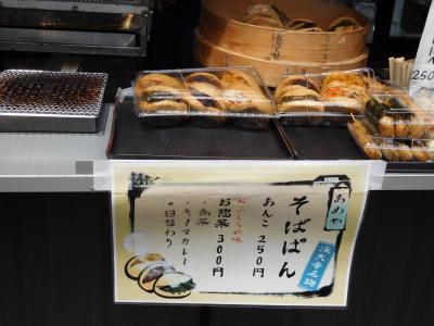 お店に入らないで何か軽く食べたいな、と思っていた時に「名物そばぱん」を見つけました。店頭には、パックされたお土産用のものと、食べ歩き用に蒸してあるものがありました。あんこやお惣菜が何種類かあったので、「切干大根」を選びました。食べ歩きに丁度良いサイズで、美味しかったです。他にも、草もちや、型に入れて焼いたそばをパンに見立てた、そばサンドもありました。