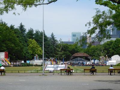 周辺はオフィス街の為、平日のお昼時は多くの人達がベンチに座ってお昼を食べたり、のんびり過ごしていました。大噴水近くの第二花壇では、バラが綺麗に咲いていました。訪れた時は、ちょうど、オクトーバーフェスタのイベント開催期間中でしたが、平日は夕方からの開催だった為、昼間はとても、のどかな雰囲気でした。