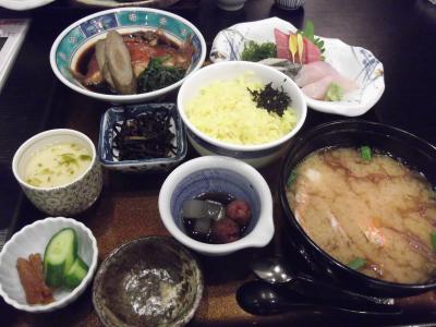 下田駅前にあり、1階が直営販売所で、その脇にある階段をのぼって2階に行くと、「網元料理徳造丸 下田店」があります。テーブル席もありますが、ゆったりとしたお座敷に案内してもらいました。金目鯛は、すごく身がしっかりとしていて、食べ応えがありました。また、黄色いくちなしご飯やお吸い物も美味しかったです。