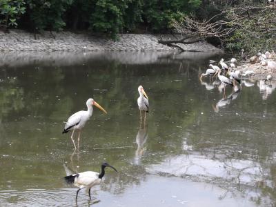 園内には、放し飼いの鳥が沢山いました。くちばしが鋭い鳥がいっぱいいて、突かれたら痛そうで怖かったので、見るだけにしました。すると、エサをもった人達にいっぱい鳥が群がって来て、小さいお子さん達は、泣き叫んでいました。池が広がっていて、周りの道にも鳥がいっぱい歩いていました。う~ん、エサやりが楽しめれば良いかもしれないけど、そうじゃなかったら、ちょっと…今一な印象でした。。アマゾンのジャングルや、ふれあい広場などを通って、結構歩いて、やっと出口に到着しました。