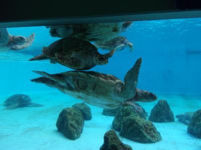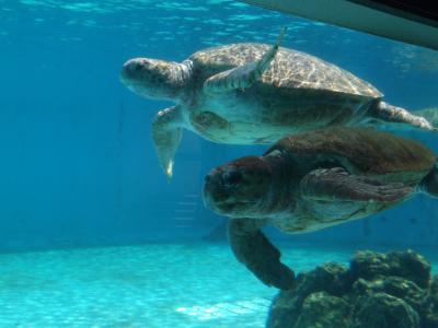 プールの上から大きなウミガメが泳いでいる姿が見えて、地下観覧室に下りて行くと、沢山のウミガメ達がスイスイ泳いでいる姿を、至近距離で見る事が出来ました。のんびり優雅に泳いでいる姿は見ていて飽きない位でした。入場無料です。