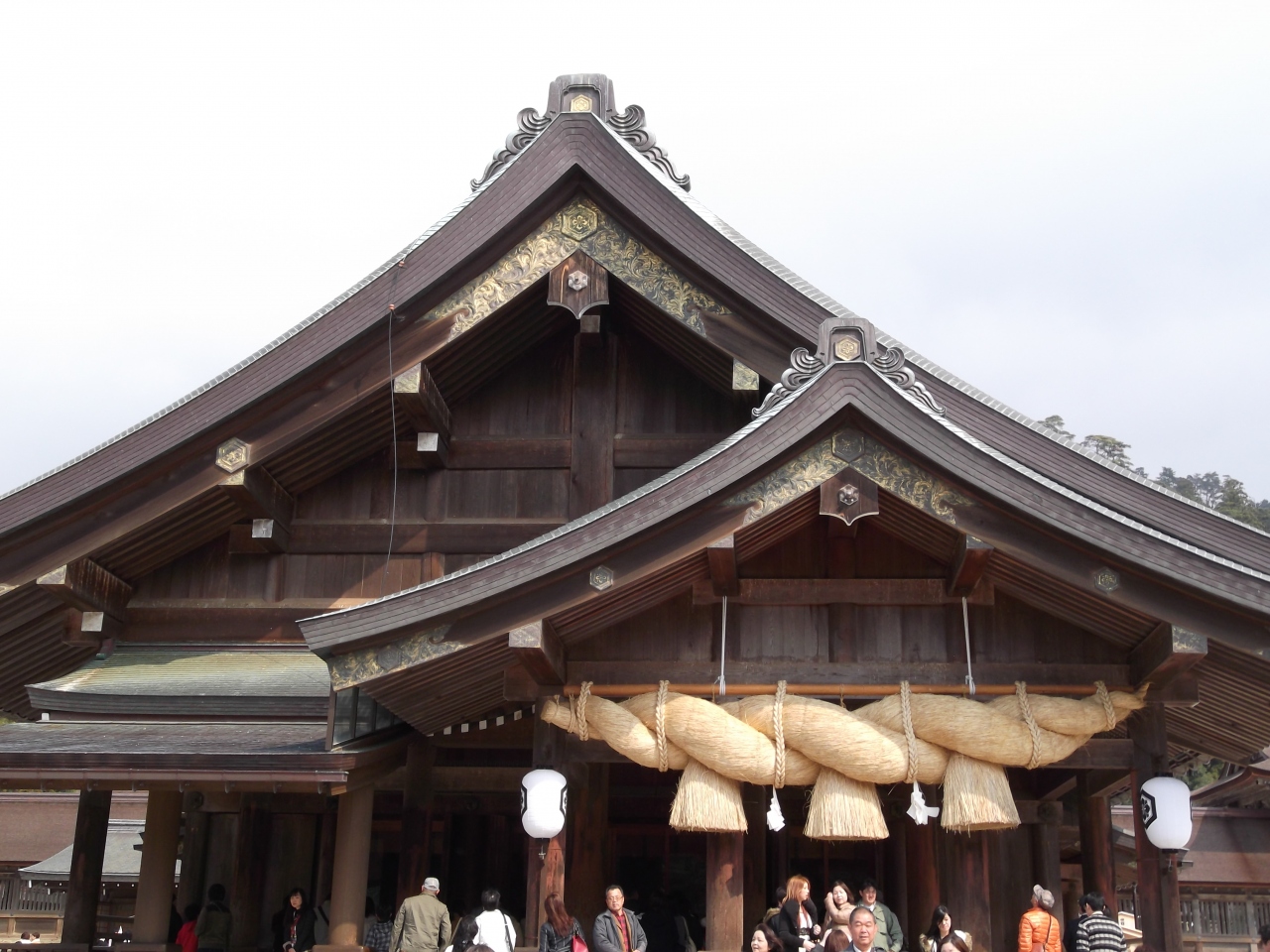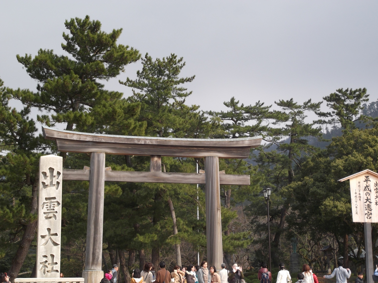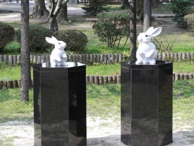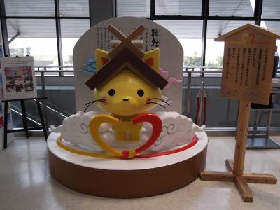 3連休に訪れたので混んでいましたが、「平成の大遷宮」期間中の出雲大社は、とても厳かな雰囲気でした。様々な良い御縁を結びつけてくれる縁結びの神様で有名です。御仮殿(拝殿)と御本殿の2カ所でお参りしました。 参拝後、来た道を戻って行くと、「平成の大遷宮」を記念した「うさぎ石像」の除幕式を行っていました。見ていると、白い幕が上げられ、うさぎの像がいくつか出て来ました。記念の紅白餅が配られていたので、頂く事が出来ました。