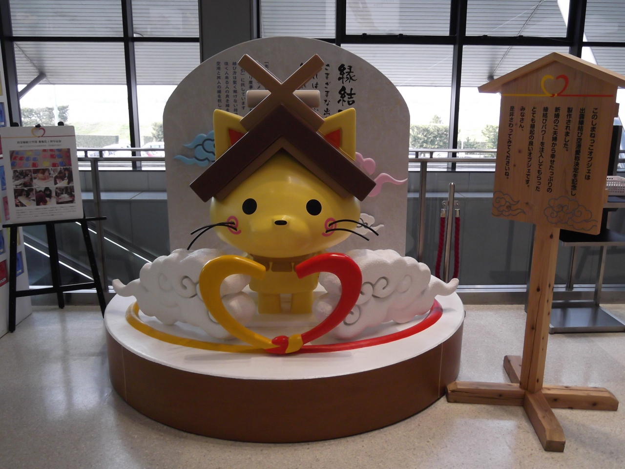 JAL系列の運航しか無い為、コンパクトで、こじんまりとした空港です。「しまねっこ」がお出迎えしてくれていて、とても可愛かったです。立派な注連縄もありました。空港係員の人が気さくに声をかけて下さったり、アットホームな感じの空港でした。出発前のロビーはかなり混み合っていました。