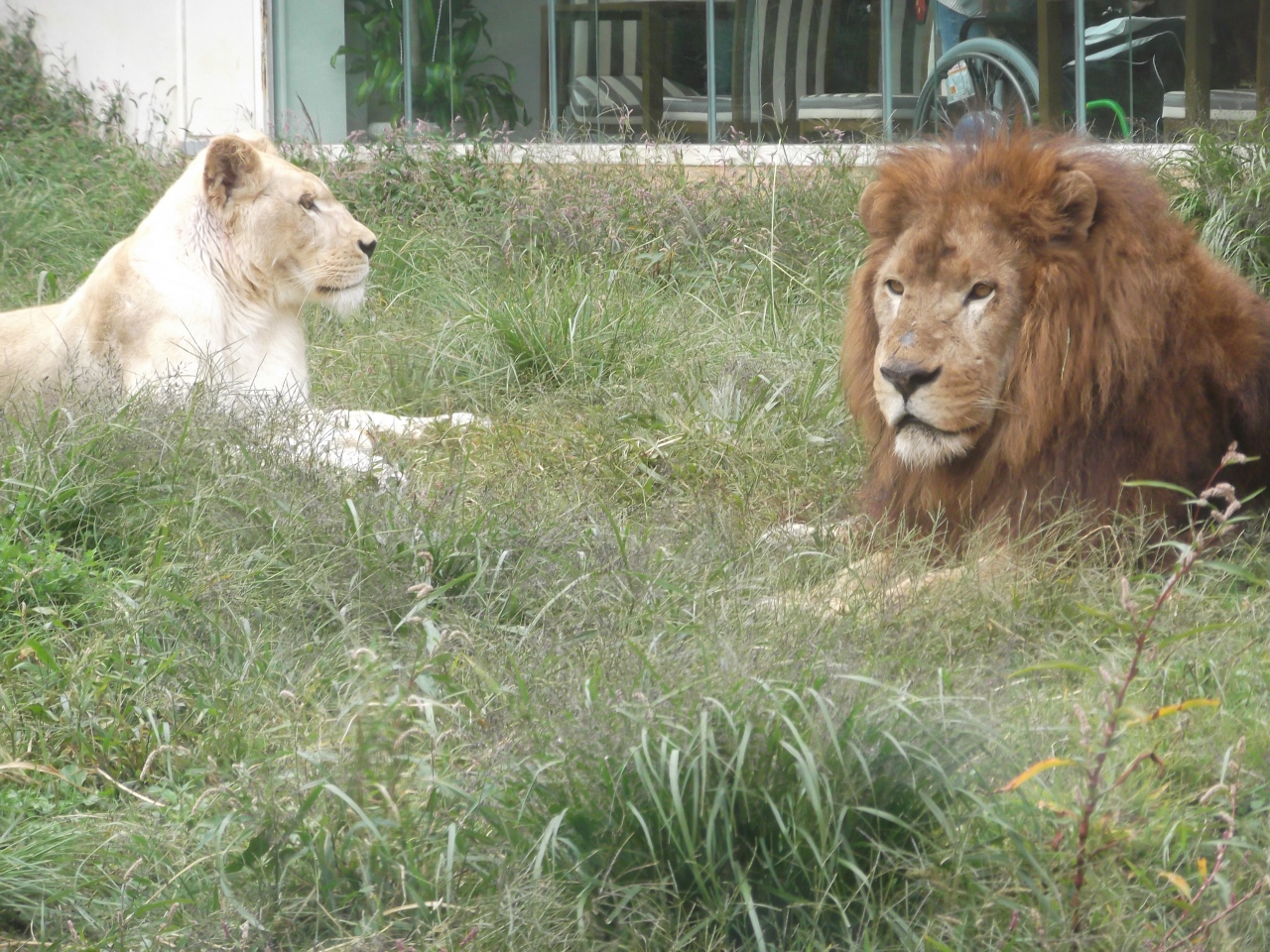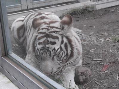 園内のアニマルゾーンに入るとすぐに、ウォーキングサファリゾーンがあります。草食動物が放し飼いになっているので、すぐそばを歩いて見て回る事が出来ます。途中、猛獣動物が見れる場所は屋内になっていて、ホワイトタイガーやライオンもいました。再び屋外に出て、ゾウやキリンなどを見ました。車いすのヒツジさんもいてビックリ!1周だけだと勿体ない気がして、もう1周見て回りました。園内は坂道もあるので、結構歩きました。