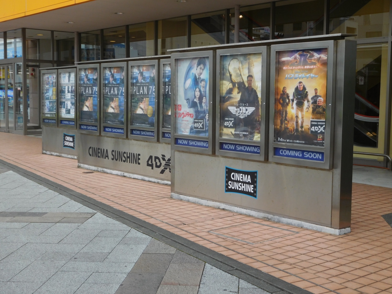 沼津駅北口からすぐの場所にある商業施設「Biv沼津」の4階にあります。エスカレーターで上がって行くと、映画館のロビーとなっており、左側にチケット窓口、中央にコンセッション、奥がシアター出入口となっていました。映画のグッズを購入する場合は、用紙に希望する商品の番号を記入して、コンセッション(ドリンクやポップコーンなどの販売カウンター)で購入するようになっていたので、列に並んで購入しました。結構多くのお客さんが、ポップコーンなどを購入していました。