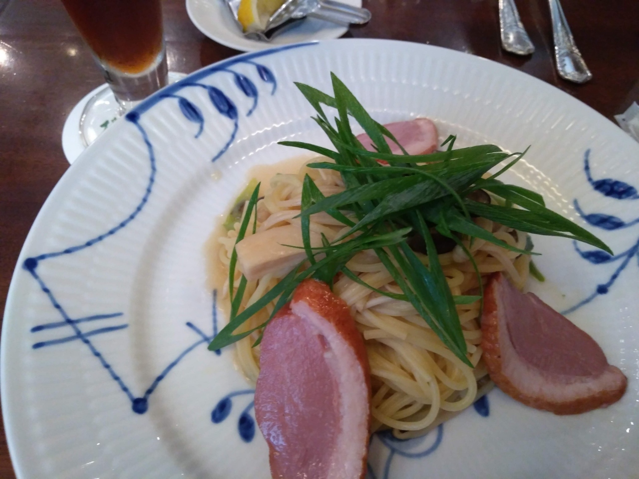 JR新橋駅近くの「ニュー新橋ビル」烏森口の階段を上った先にある、高級感のある喫茶店です。打ち合わせも兼ねて利用しているサラリーマンが多い印象でした。ランチのパスタセットを注文しましたが、高級感のあるお皿にパスタが盛られ、アイスレモンティーのレモンも絞り器がついていました。