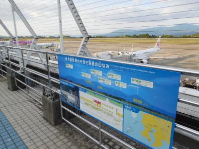 鹿児島空港3階にある展望デッキです。霧島の山々を背景に、ソラシドエア、ピーチ、スカイマークと、カラフルな機体の航空機が並んでいるのを見る事が出来ました。レストラン街と同じフロアにあるので、気軽に外に出て眺められるようになっていました。また、南側には無料で見学できる「SORA STAGE」の出入口があるので、こちらの見学もおススメです。
