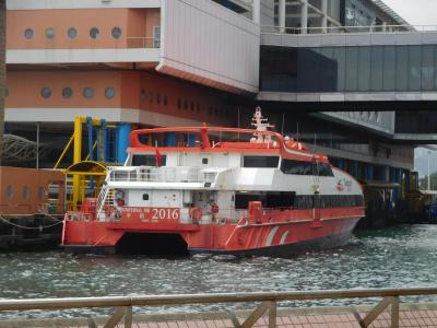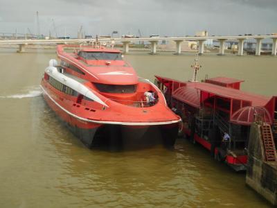 香港の上環からマカオに向かう際、ターボジェットを利用しました。上環のマカオフェリーターミナルの窓口でチケットを購入後、乗船するゲートが開いてから出国手続きをし、待合室に入る入口で座席指定を受けて、船に乗り込みました。約1時間の乗船で、あっという間にマカオに着いてしまった感じです。マカオに着いた際、マカオの海が茶色く濁っていたのには驚きました。