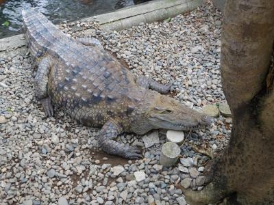 「熱川バナナワニ園」は、伊豆熱川駅近くにある「本園」の他に、マイクロバスで坂の上に行った所にある「分園」の2か所に分かれています。熱川温泉の温泉熱を利用した施設で、約100頭の大小様々なワニが飼育されている他にも、多様な熱帯植物、バナナ、日本で唯一のアマゾンマナティ、レッサーパンダやカメなどの展示もあり、予想以上に充実していました。温泉街の丘陵地を利用しているので、傾斜や階段が多い場所もありましたが、とても見応えがあり、ゆっくりと楽しめました。