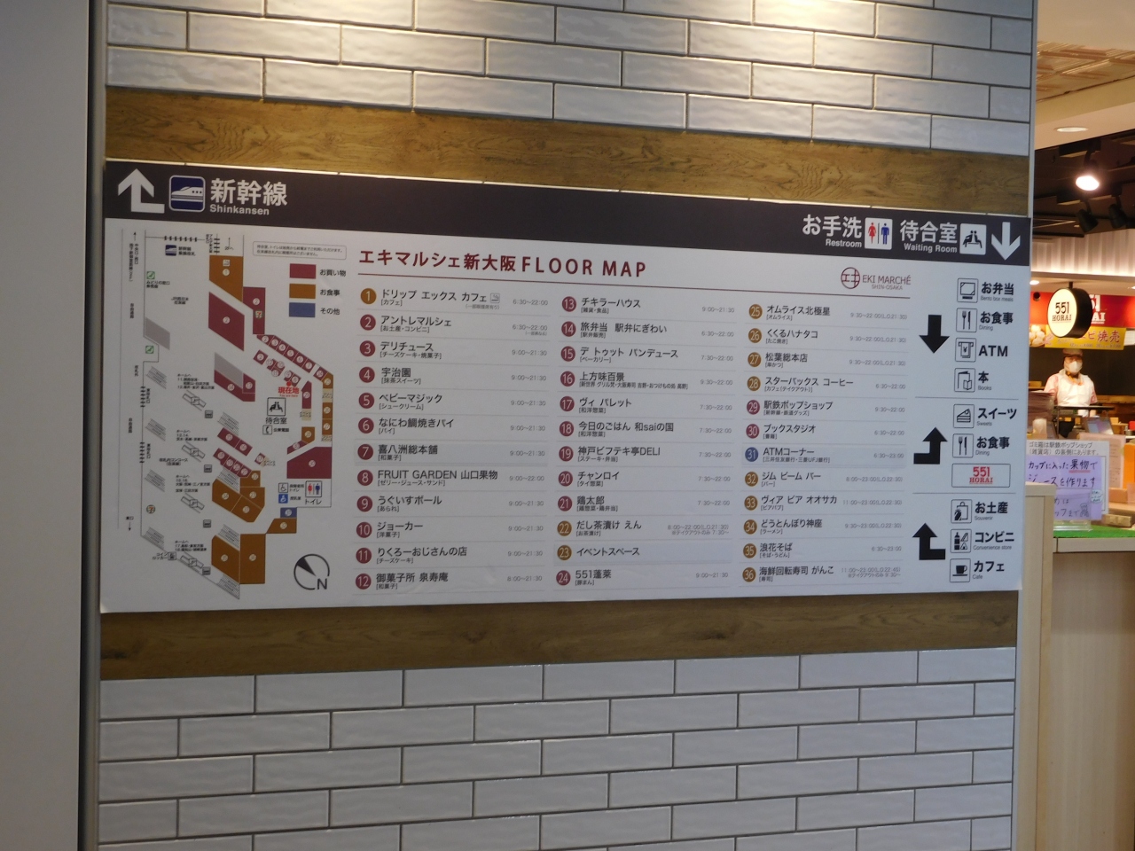 JR新大阪駅の在来線改札内にあります。新大阪駅でJRから新幹線に乗る前に立ち寄りました。お土産を選んだり、新幹線の車内で食べるものを選んだり、とても魅力的なお店が多く、何度もグルグルとお店の前を通ってしまいました。新幹線に乗り継ぎする時間に余裕を持っておかないと、慌てて新幹線に乗る羽目になってしまいます。