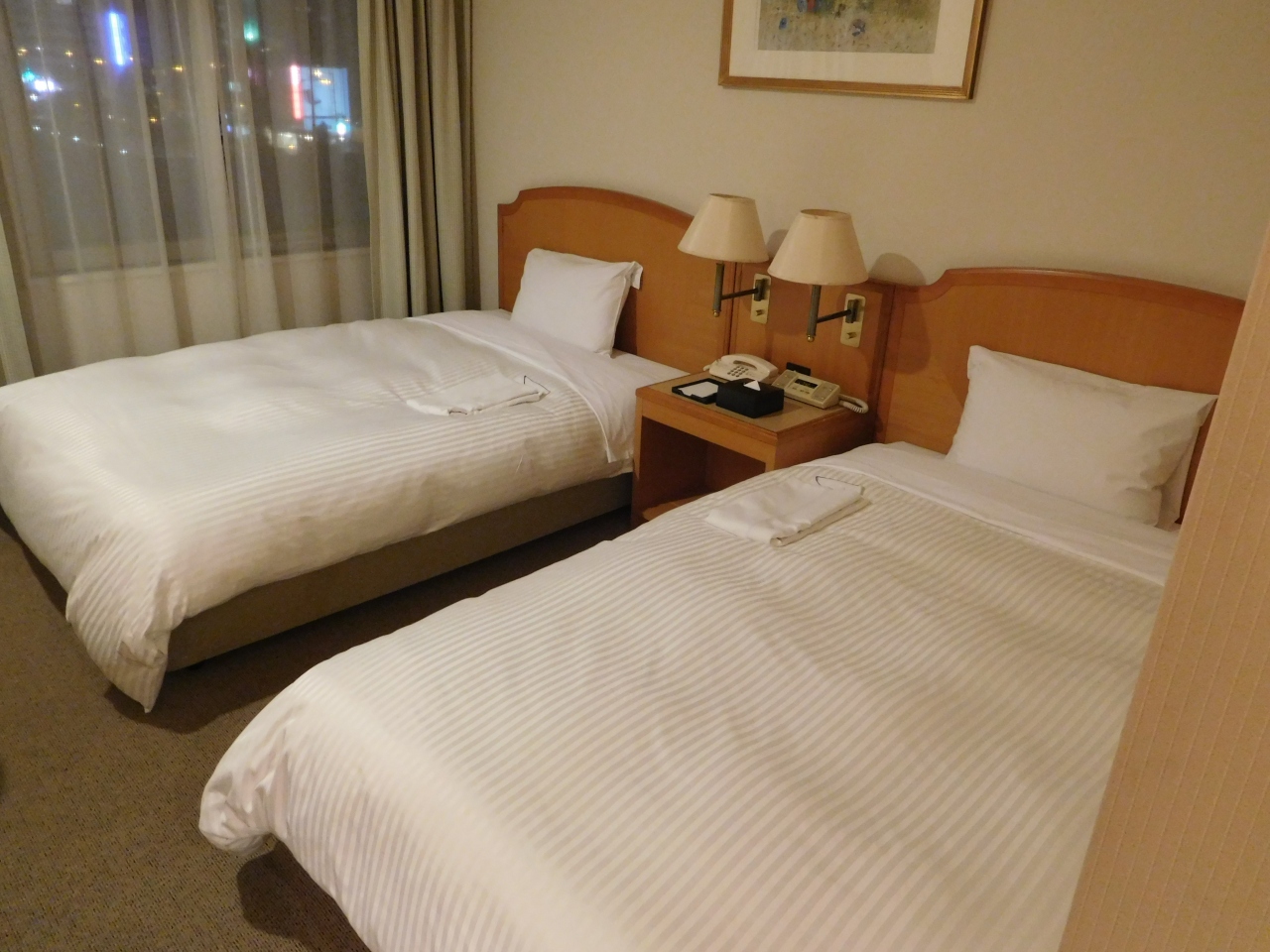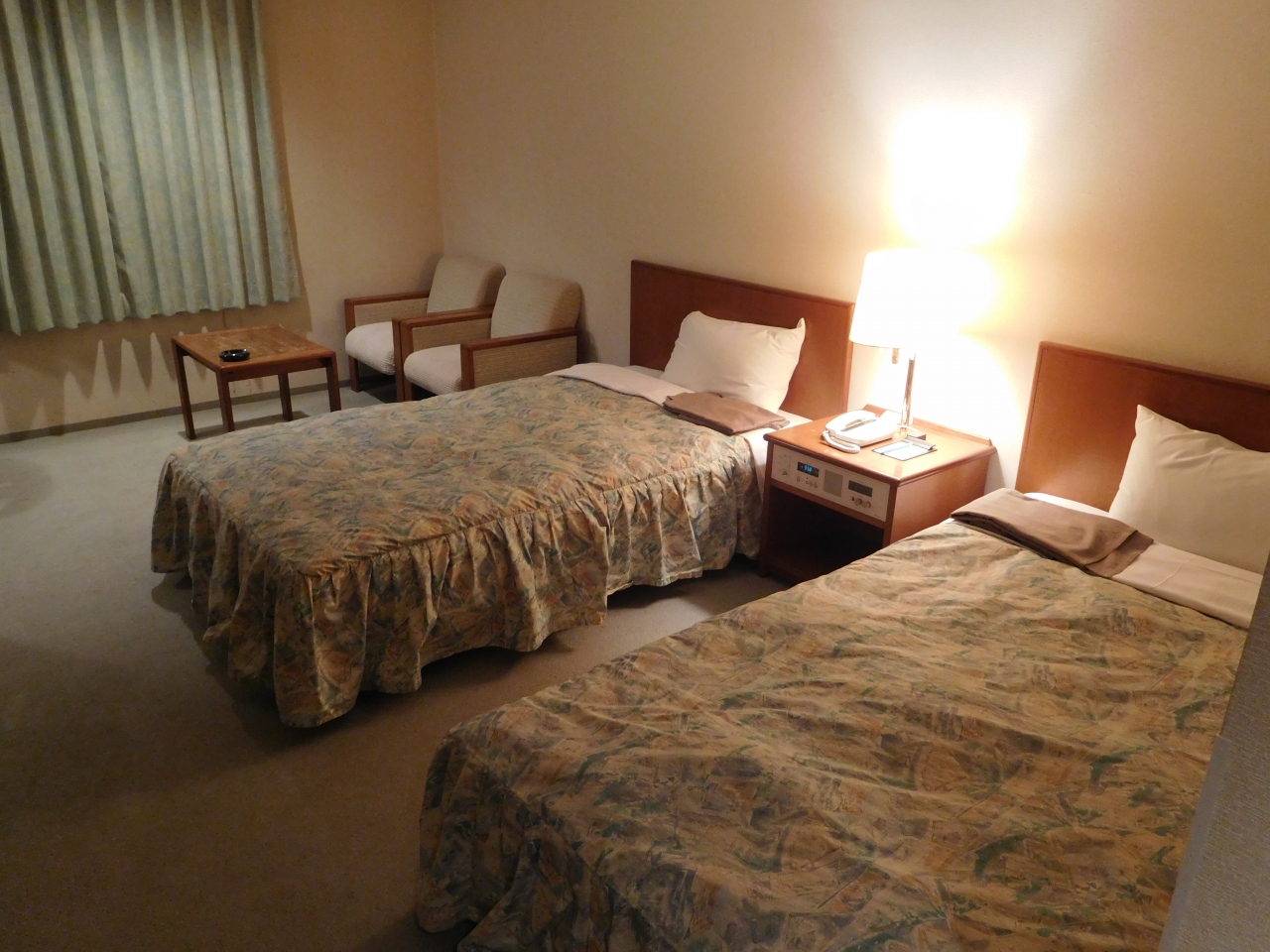 ツインルームを利用しましたが、ゆったりとした広さの部屋でTVは壁に備え付け、ソファーも置いてあり、ゆっくりくつろぐ事が出来ました。直前の予約にも関わらず、フロントの方の対応がとても親切で、ホテルのすぐ隣にある機械式駐車場を利用する事も出来、良かったです。朝食は、和惣菜を中心としたメニューで、ポンジュースも冷蔵庫から好きなだけ頂く事が出来ました。コンビニもすぐ近くにあり、快適に過ごせて良かったです。