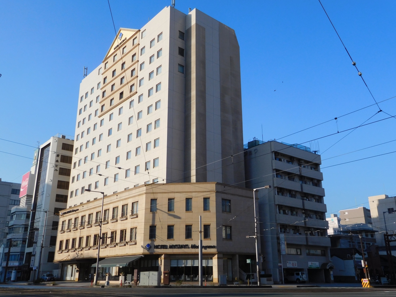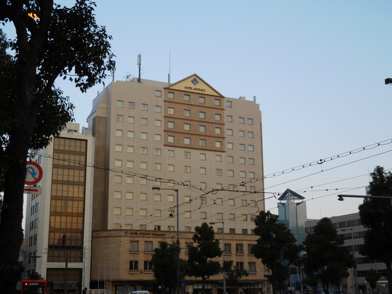 松山城のお堀の角にあり、ホテルのすぐ目の前の道路には路面電車が走っています。朝食会場は、1階の道路に面した場所にあるので、外の景色を眺めながら頂く事が出来ました。また、朝食のメニューが充実していて、とても美味しかったです。ホテルの部屋もなかなか快適で、アメニティも充実していました。ホテルの名称が「ホテルJALシティ松山」から変わっているので、ナビで検索する際は注意が必要です。