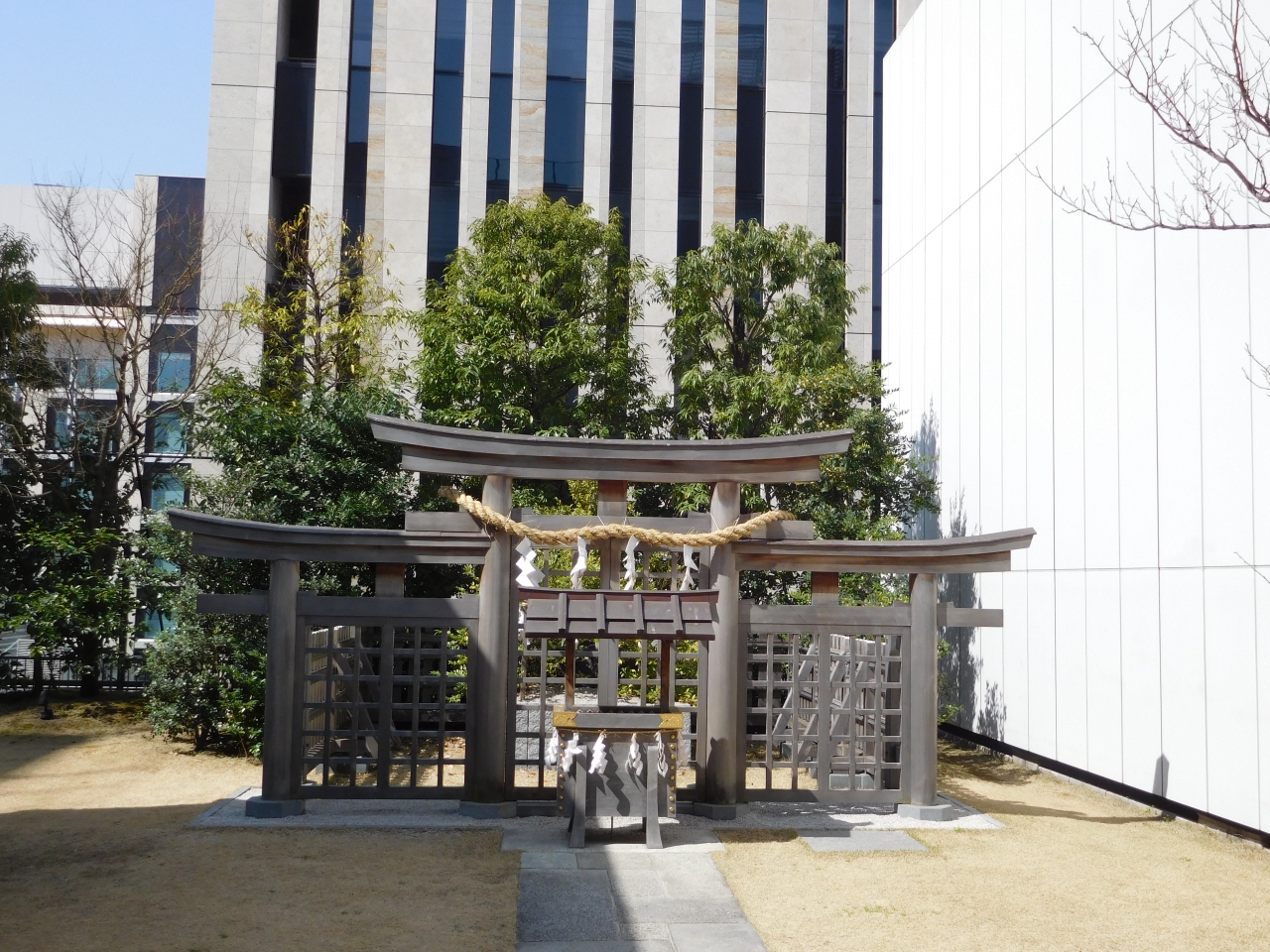 世界最大級のユニクロ銀座店が入っている「ギンザコマツ東館」の裏側にある「ギンザコマツ西館」の屋上に鎮座している神社です。屋上Rフロアに「ギンザコマツ三輪神社」と書かれていたので、エレベーターで屋上に上がってみました。思ったよりもこじんまりとした空間で、一瞬、入っても大丈夫なのかな?と思ってしまうような場所でした。屋上庭園として開放されているようです。
