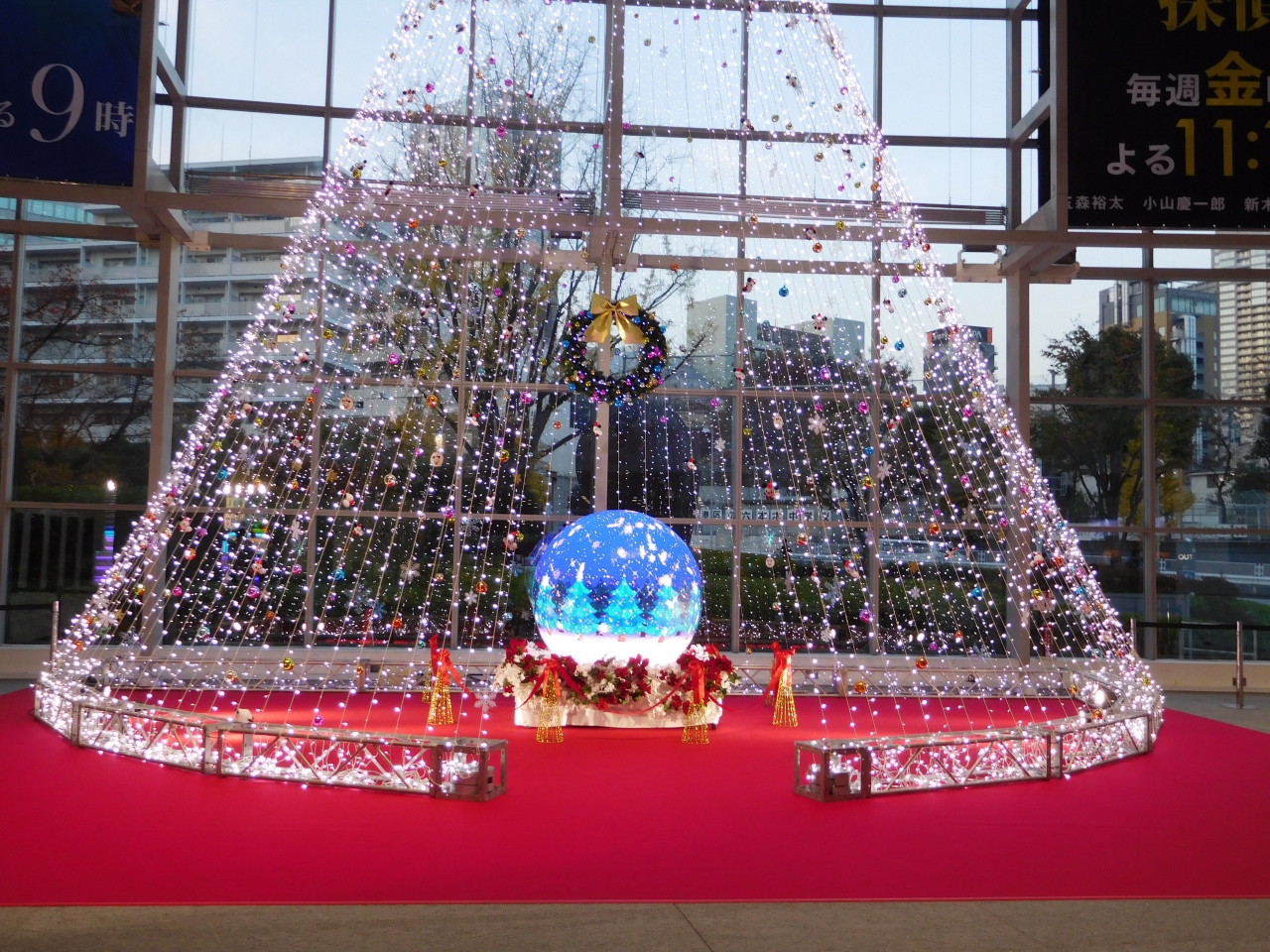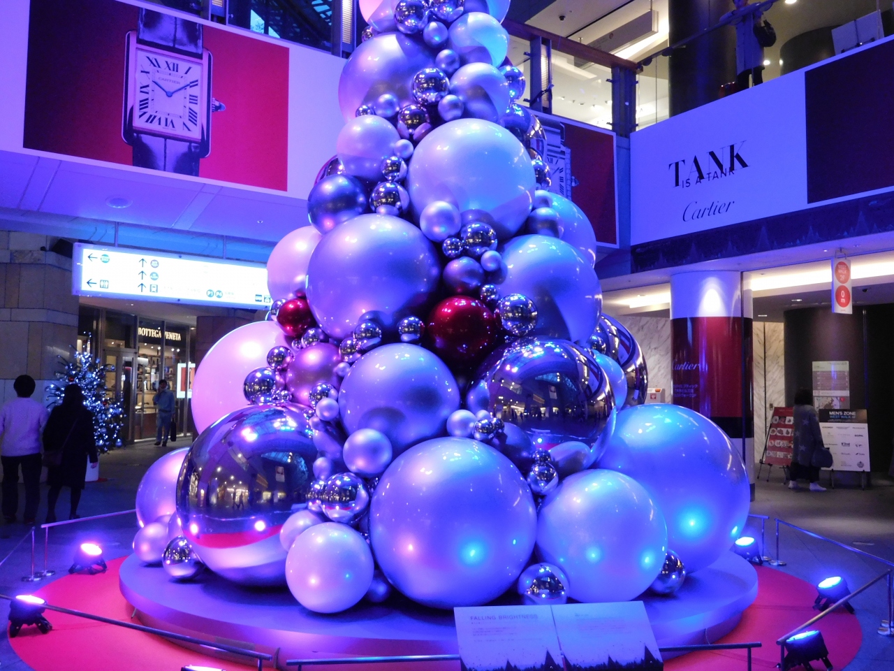通称「新丸ビル」と呼ばれているビルで、高級ホテルのような雰囲気でした。3階のアトリウムにクリスマスのフォトスポット「Blooming Arch」が設置されていたので、写真を撮りに行きました。ツリーのアート作品のようになっていて、斬新な感じがしました。ビル全体が高級感あふれる印象でした。