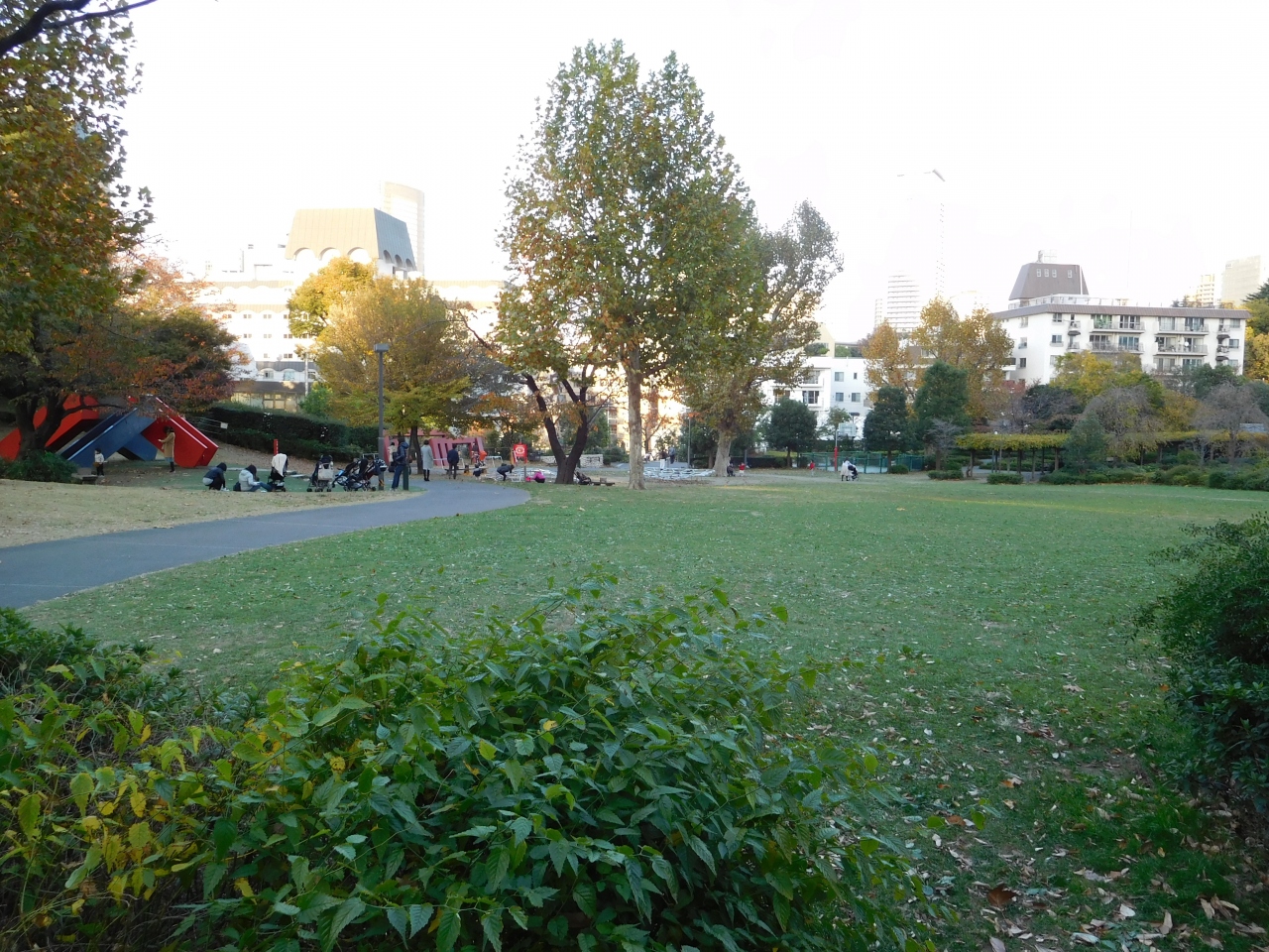 日比谷公園の中程にある広場で、周囲はフェンスに囲まれています。11月に訪れた際は、ちょうど、「東京都観光菊花大会」の期間中で、見事な菊の展示がありました。広場の中央付近には、子供達が遊べるように遊具が設置されていました。また、ベンチも多くあるので、のんびりとくつろいでいる大人の姿もありました。木々が紅葉していて、綺麗でした。
