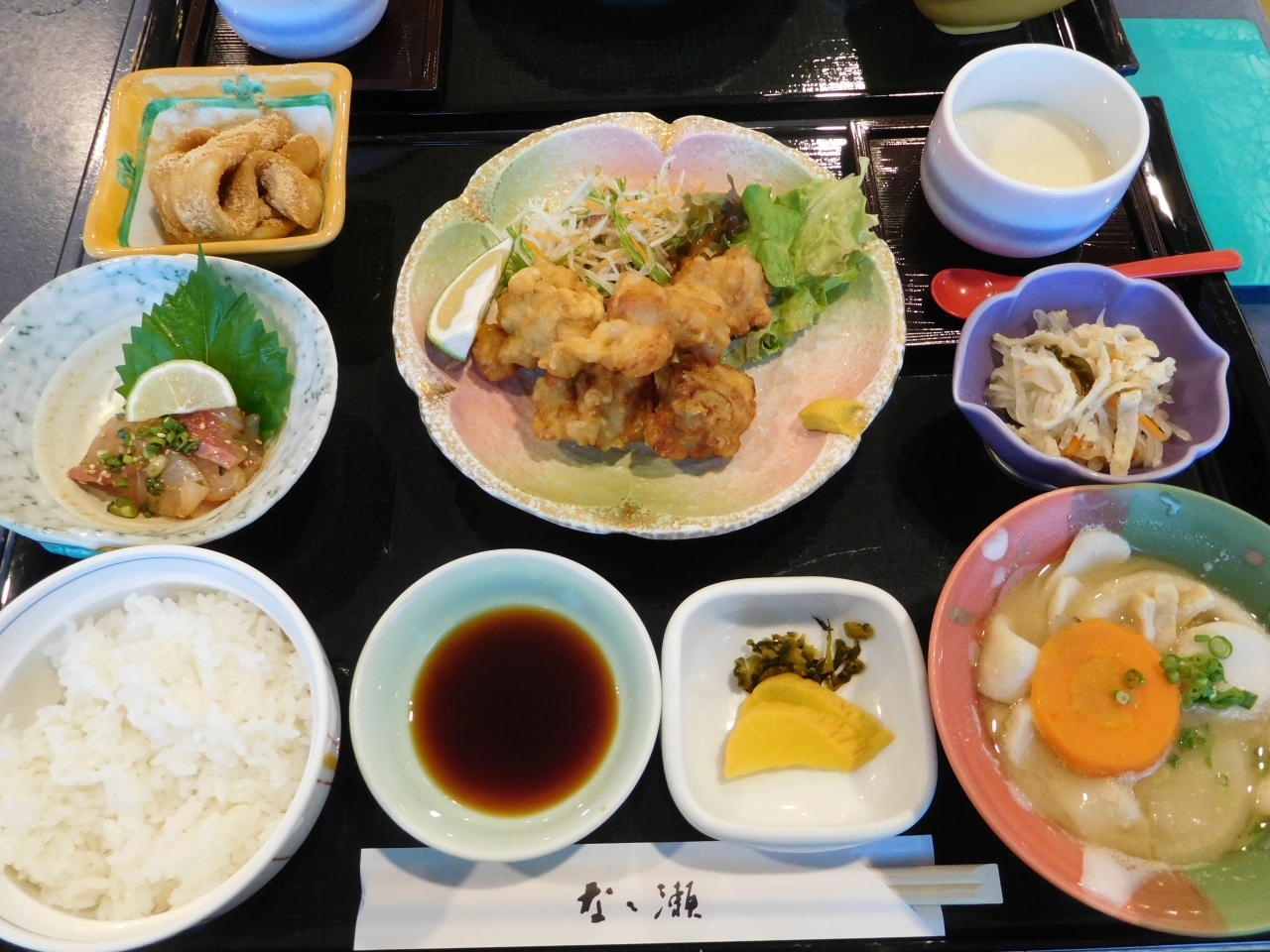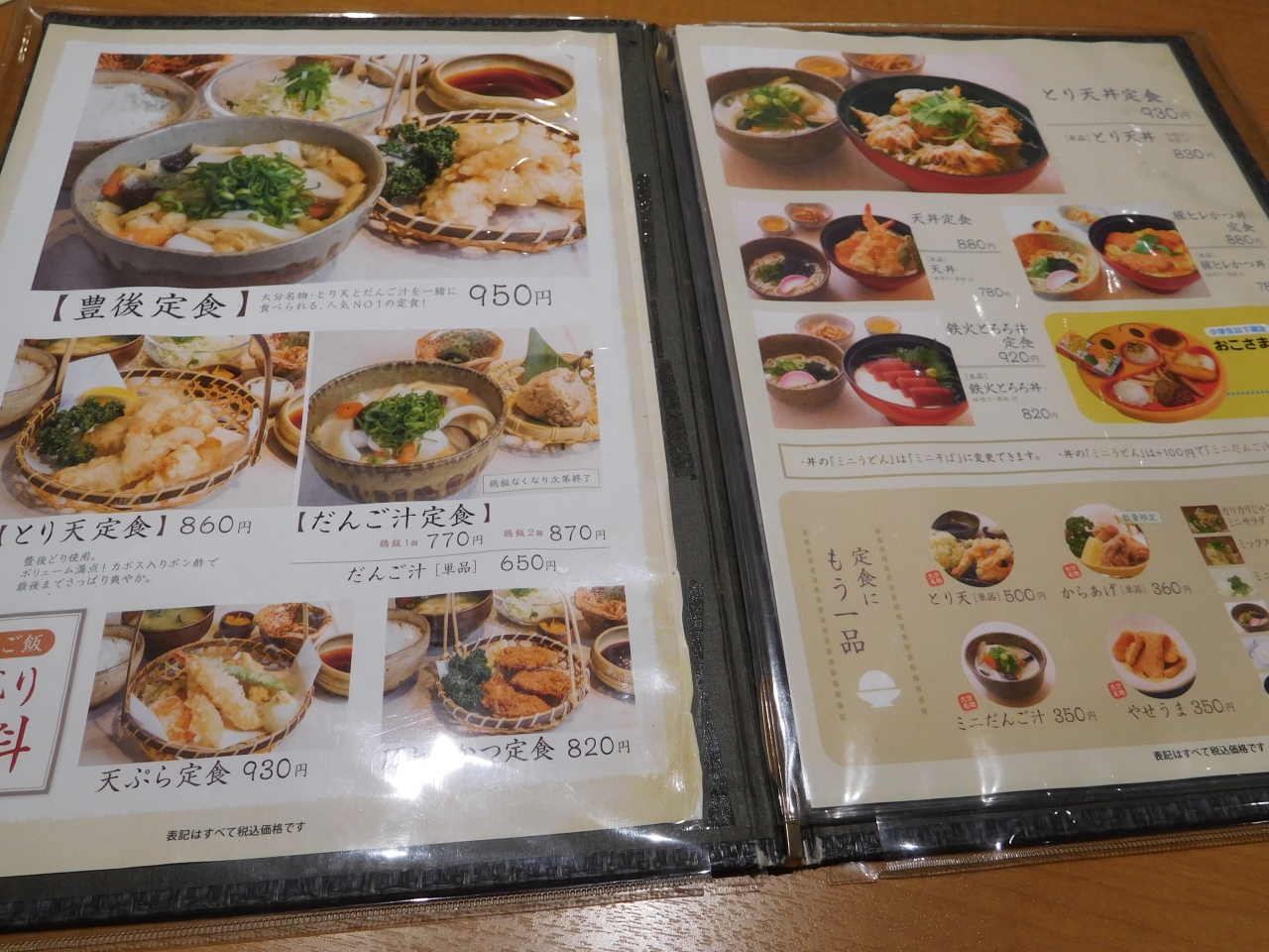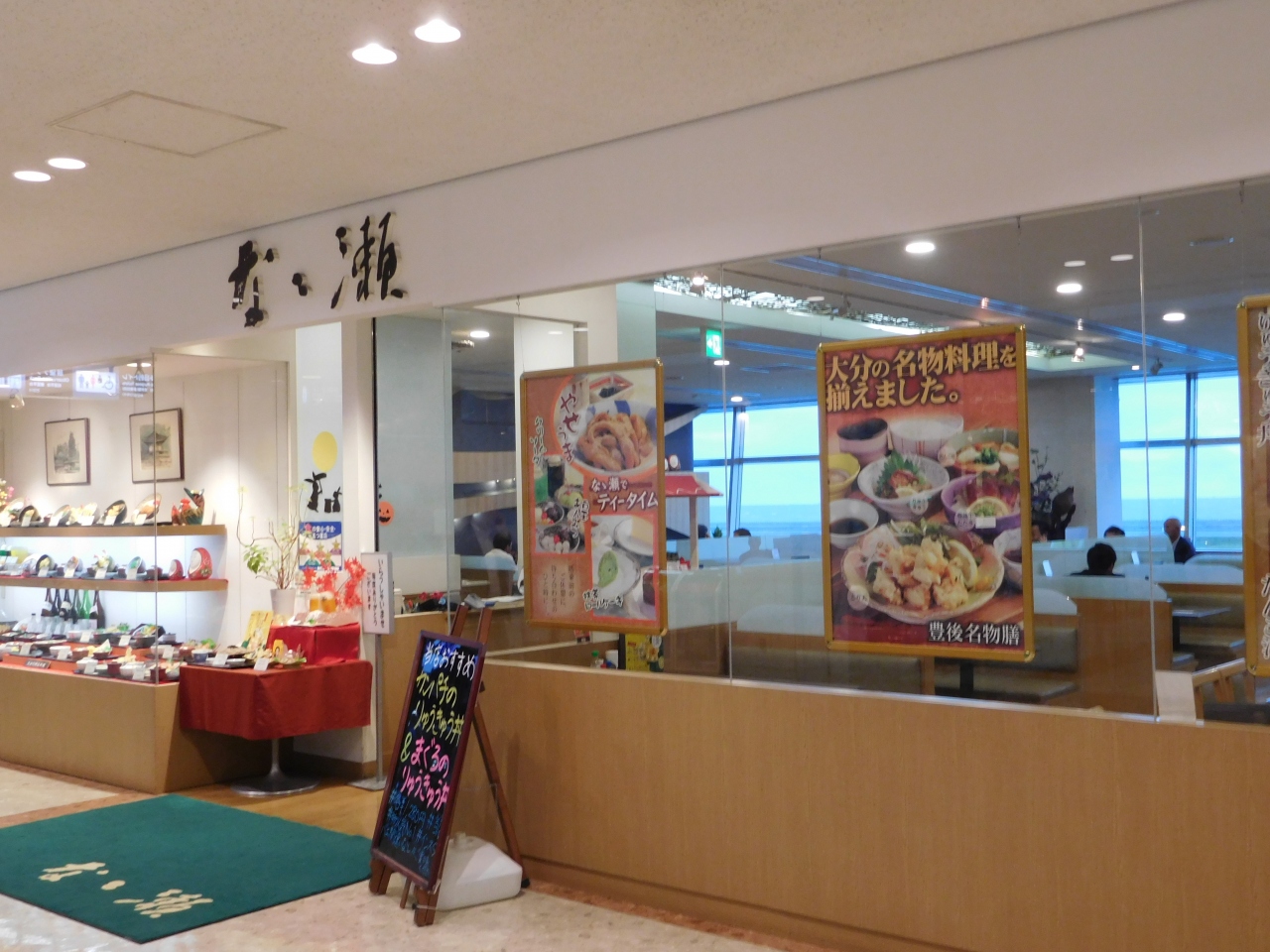 大分空港3階のレストランフロアにあります。大分のご当地グルメ(とり天、だんご汁、りゅうきゅう、やせうま)が全部揃った、ちょっと贅沢な御膳メニューがあったので、注文しました。別府市内に行ってしまうと、これだけ揃ったメニューが食べられるお店はなかなか無いので、空港で食べれて良かったです。窓際の席に座ったので、離発着する飛行機を眺めながら、食事が出来ました。