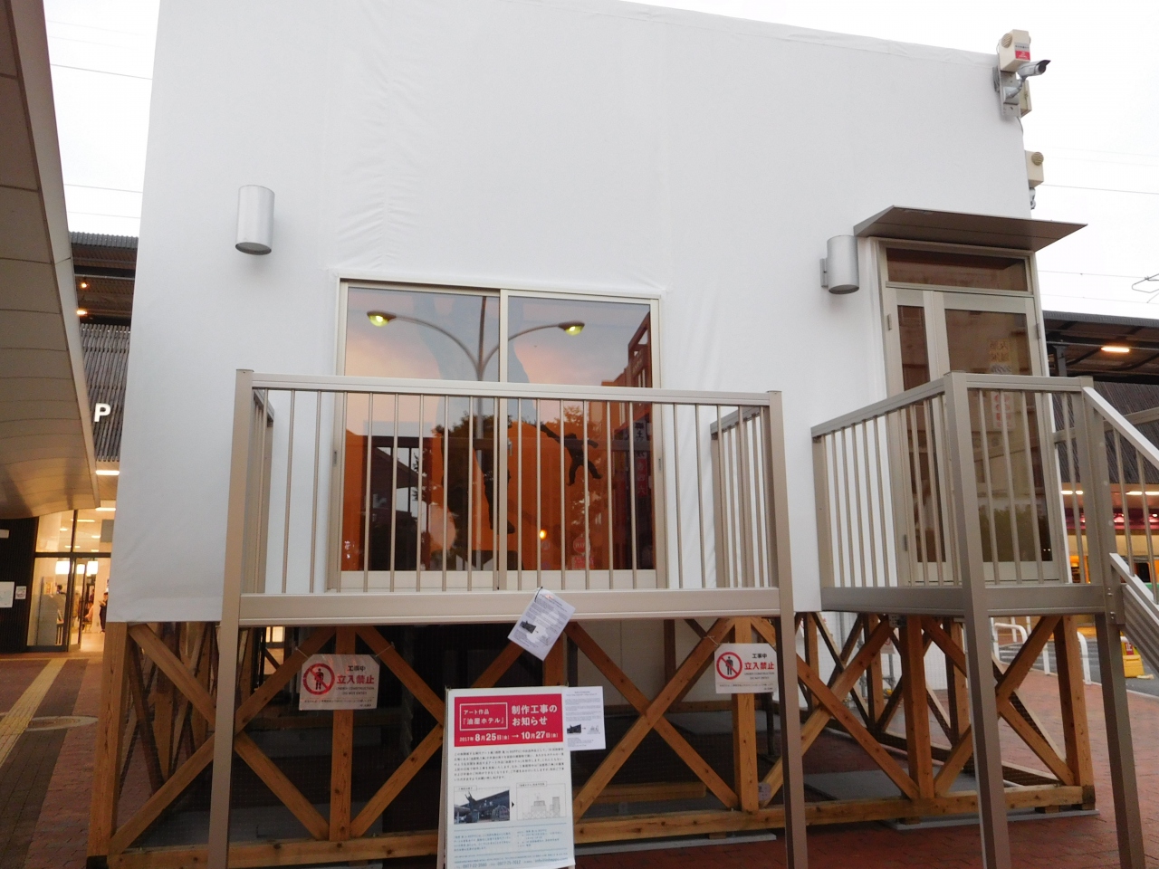 別府駅前にあるシンボル的な銅像です。数年振りに別府駅を訪れてみた所、以前あった場所に見当たらなかったので、場所が変わったのかな?と思い、プレハブ小屋の近くに行ってみると、なんと、工事期間中のようで、プレハブの中に銅像がありました。夕方近かったので、小屋の中がライトアップされていました。10月下旬から12月下旬までの間に開催される現代アート作品の一つとして、「油屋ホテル」が出来るようです。2か月という期間限定になりますが、いつもとは違った銅像が見れるようなので、どんな作品になるのか気になります。