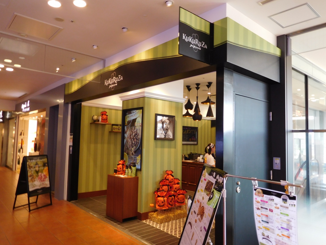 アクアシティお台場の3階にあります。高級感のある、割りと小さ目の店舗でした。訪れたのが9月だったので、期間限定のパンプキン味のチョコレートクッキーが沢山並んでいました。こういった期間限定商品が並んでいると、思わず気になって店内に入って見てしまいました。店内には、飲食スペースが無いので、ショコリキサーはテイクアウトのみの販売でした。