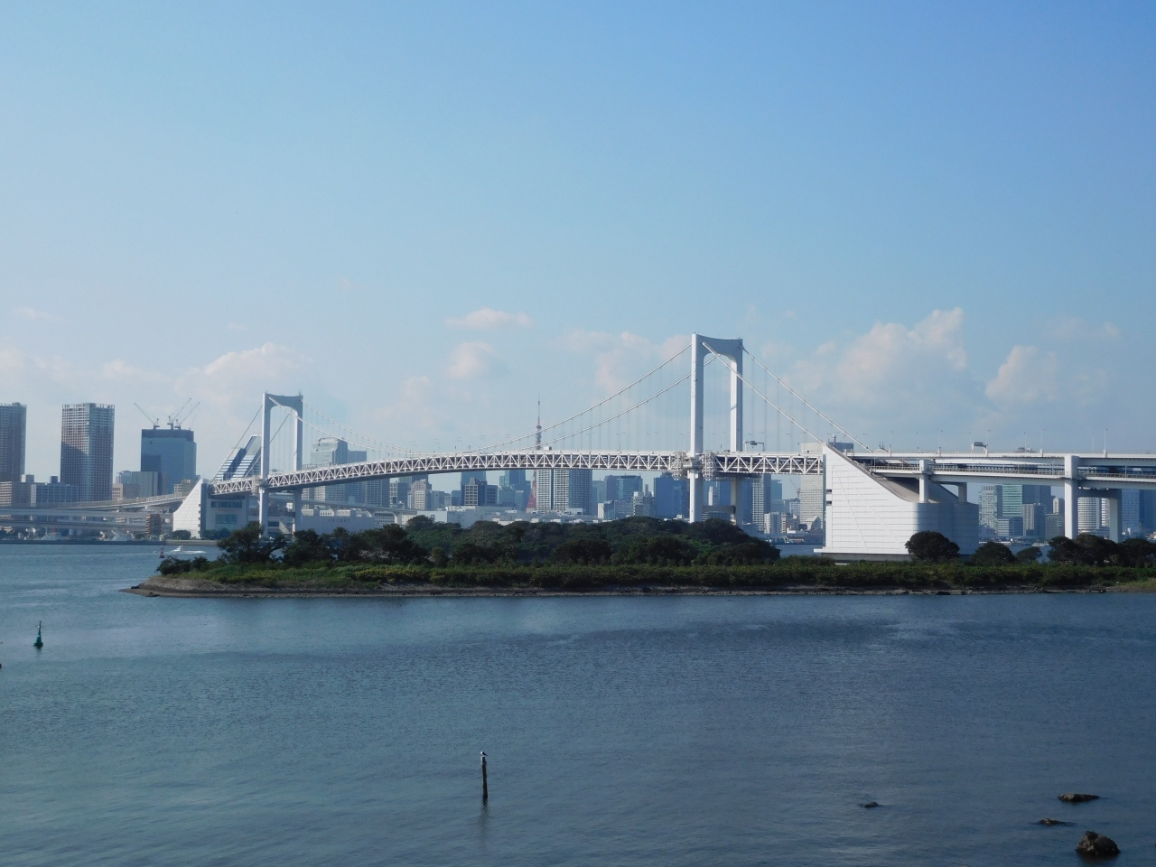お台場の「自由の女神像」の近くにある、展望台です。目の前には、レインボーブリッジが見える眺めの良い景色が広がり、多くの観光客が写真を撮っている場所でした。海側の方に行くと、ベンチが置いてあり、のんびりと海を眺めながら休憩する事も出来るようになっていました。昼間の景色も綺麗で、十分に楽しめましたが、今度はクリスマスの時期に夜景も見に来たいと思いました。