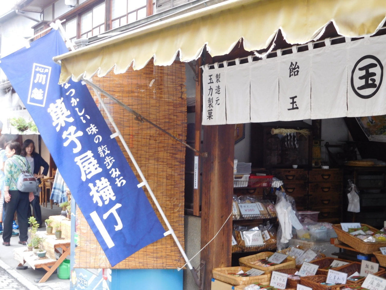 川越の「菓子屋横丁」の一角にある、芋けんぴ(川越けんぴ)のお店です。出来立ての「川越けんぴ」を食べ歩き出来るような形で販売している他、お土産用にパックされた商品も並んでいました。試食が美味しかったので、ごま味のパックをお土産に購入しました。食べ歩きしている人の商品が美味しそうだと、ついつい気になってしまう、不思議な相乗効果があるな、と思いました。