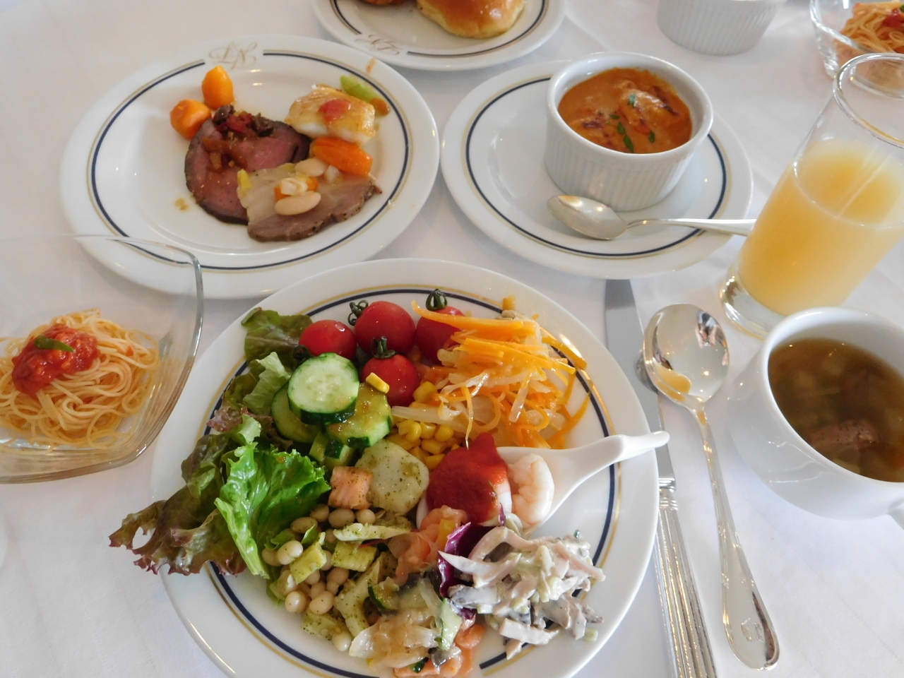 タワー5階にあるフレンチレストランで、夏の期間に行われている「サマーランチブッフェ」に食事に行きました。手の込んだ上品な料理が沢山並んでいて、どれもとても美味しかったです。氷川丸やみなとみらいの景色を眺めながら、クラシカルな雰囲気の中で、ゆっくりと食事が出来て良かったです。