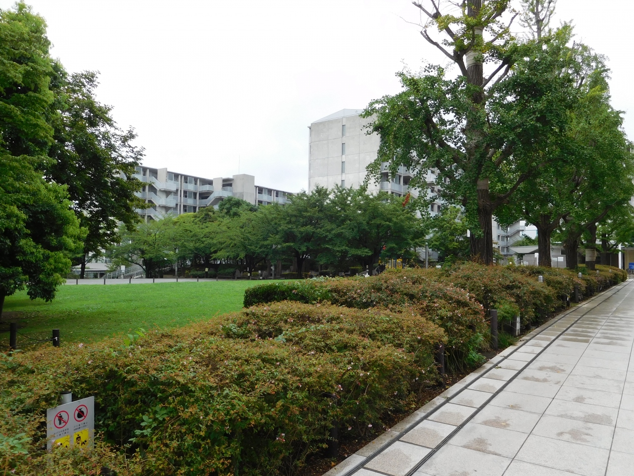 都立大学駅から徒歩5分程の距離にある公園です。公園の前には、広々とした歩道があり、めぐろパーシモンホールや、八雲中央図書館に訪れる人が通りがかる場所でもあるので、公園というよりは、めぐろキャンパスの施設内というイメージが強い感じでした。綺麗に整備された芝生広場があり、ジャブジャブ池や、どんぐり林もあります。夏休みの期間中でしたが、小雨の降る天気だった為、公園内はひっそりとしていました。