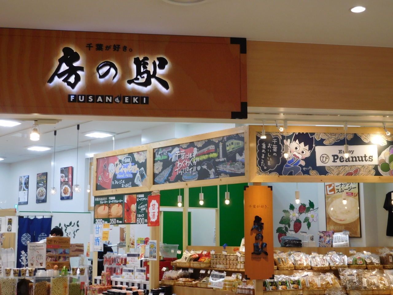 ららぽーとTOKYO-BAY西館1階、ロピアの近くにある、千葉県のアンテナショップです。ピーナッツを始め、お菓子や加工食品など、沢山の千葉県の商品が並んでいました。店頭には、味の付いたカラフルなピーナッツが並んでいて、詰め放題のコーナーもありました。また、ピーナッツスムージーの販売もあり、どんな味なのか気になりました。