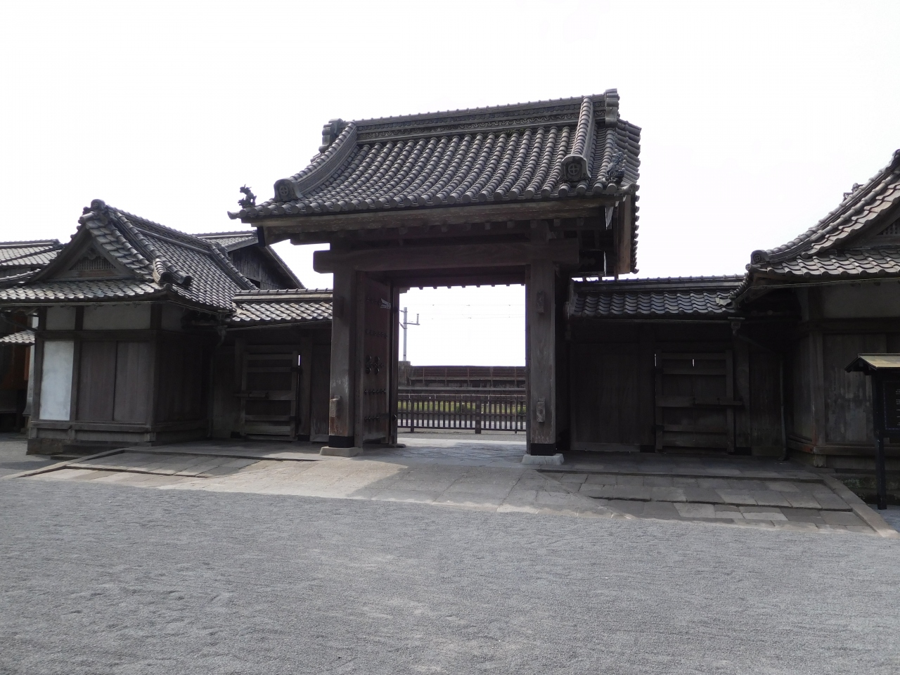 仙巌園の中に入り、売店を過ぎた辺りの道路側にある門です。とても重厚感があり、歴史が感じられました。現在は実際には「門」としては利用されていませんが、NHK大河ドラマのロケ地として使用されたようで、写真撮影スポットになっている感じでした。