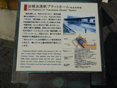 横浜赤レンガ倉庫のある、赤レンガパークの奥側(駐車場近く)にあります。「横浜港駅」は、最初に、横浜税関構内の荷役所として1911年に造られました。その後、1928年にこのプラットホームが造られ、外国航路の船が出航する際、東京駅から汽船連絡列車が接続していたようです。今は、屋根も付いているちょうど良い休憩所として利用されているようですが、この場所に駅があったのには驚きでした。