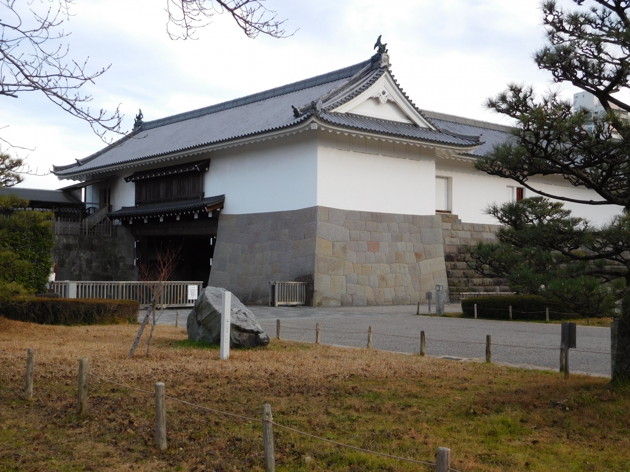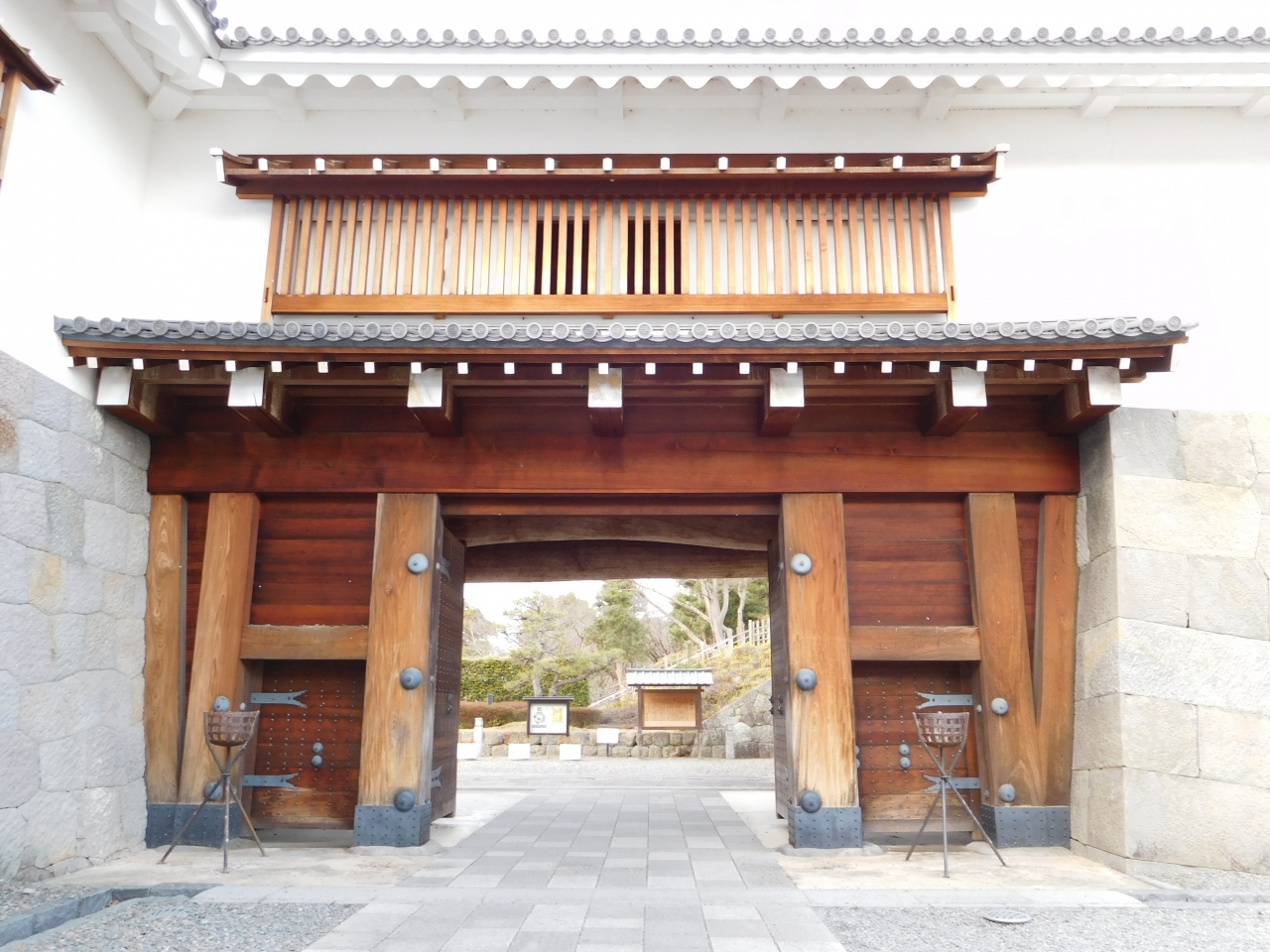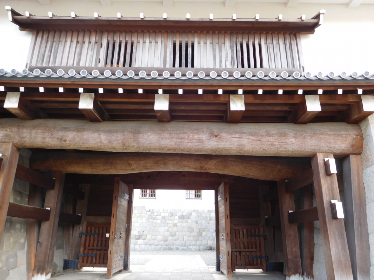駿府城公園の静岡駅方面に一番近い門になります。ニノ丸堀(中堀)にかかる東御門橋を渡ると、すぐに「高麗門」があります。主要な出入り口として使用され、割と小さめの門ですが、堅固な造りになっています。巽櫓の内部を見学した後、この門を通って公園の外に出ましたが、すごく重厚感があって、立派でした。