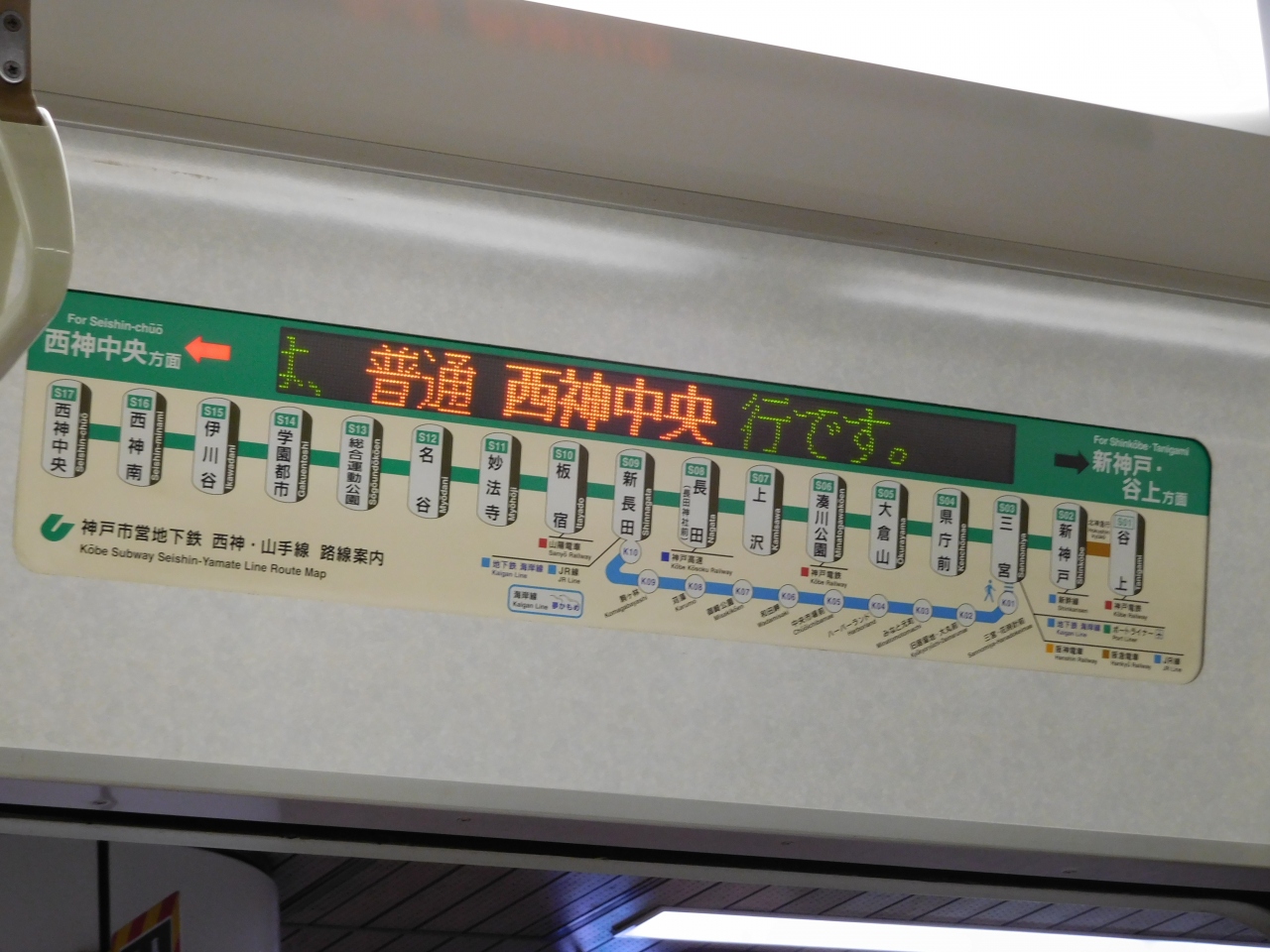 新幹線の乗継ぎの為、新神戸駅から三宮駅まで1駅ですが利用しました。JRではなく市営地下鉄の為、運賃が高くなってしまいますが、初めての土地でも案内通りに行けば良いので、迷わずに辿り着けて良かったです。昼間の時間帯であった為、車内はガランとして空いていました。