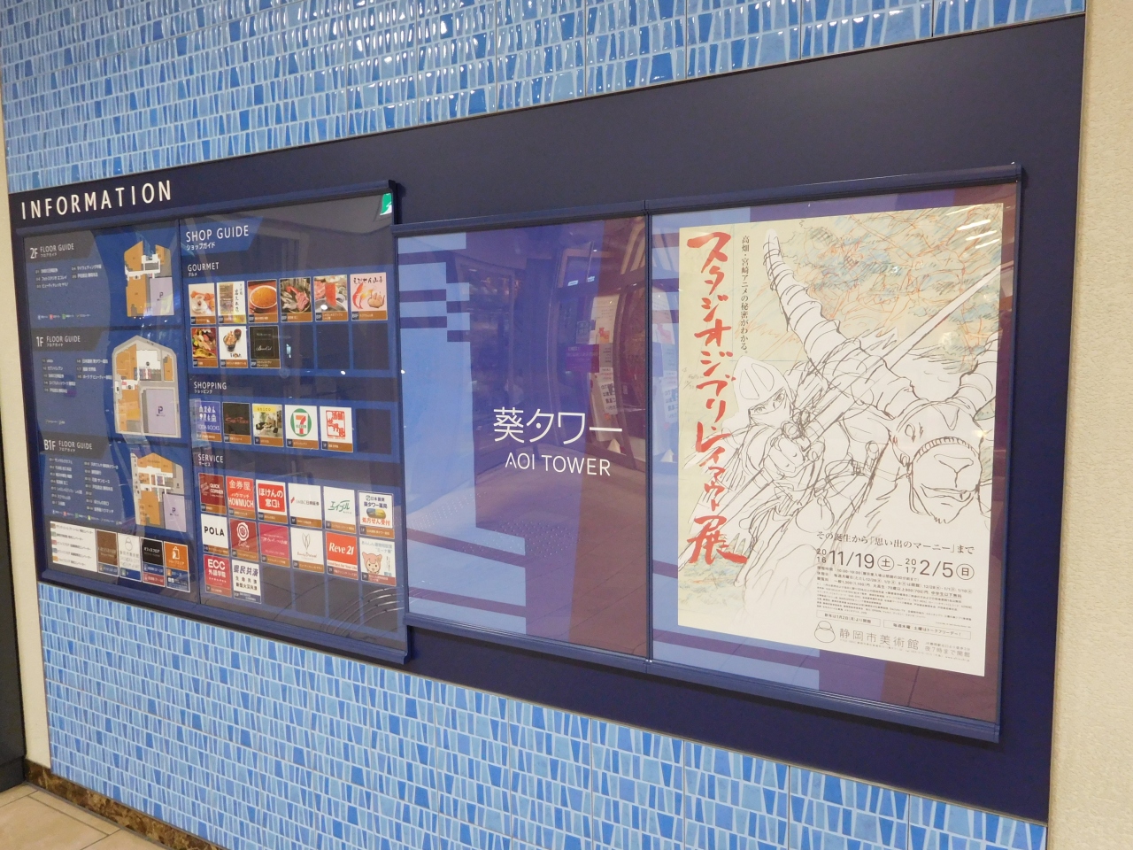 静岡駅前の葵タワー3階に入っている、都市型の美術館です。ちょうど「スタジオジブリ・レイアウト展」が開催されていて、開館時間が夜の19時までやっているようだったので、折角なので見ていく事にしました。白を基調とした明るい雰囲気の美術館で、沢山の作品が展示され、ものすごく充実した展示内容になっていました。イヤホンガイドなどの貸し出しもあり、出入口付近の売店前には休憩スペースもあり、なかなか満足感が高かったです。