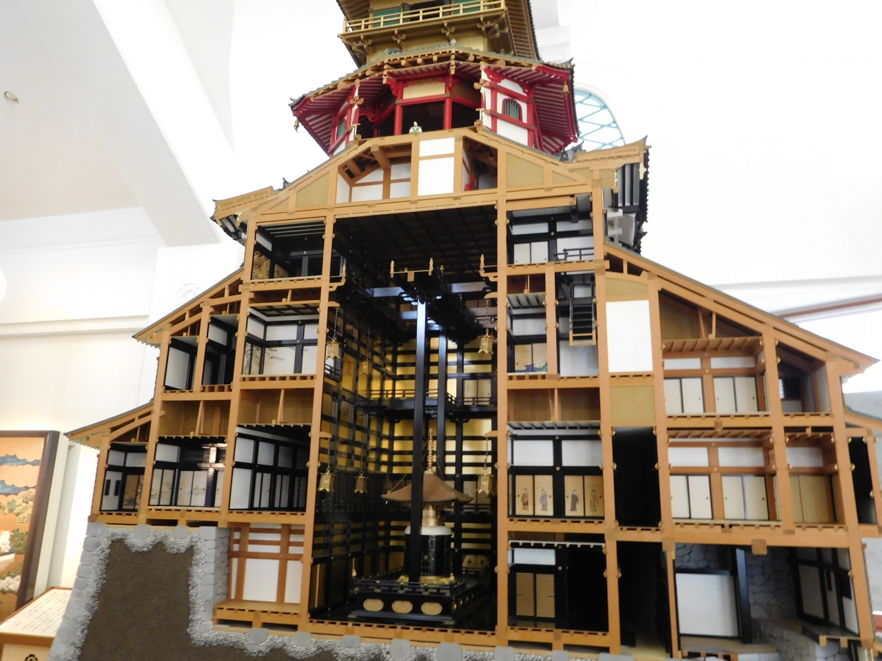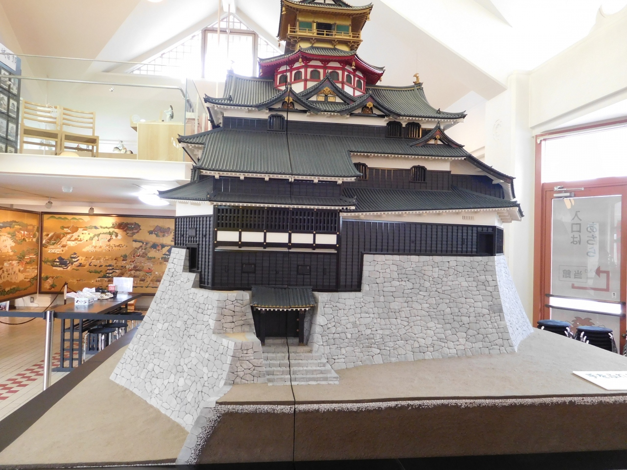 1992年、「スペイン・セビリア万国博覧会」の日本館で展示された「安土城天守の最上部 5階、6階部分が復元されて、展示されています。6階部分は、階段を上がって見学するようになっていましたが、金箔が10万枚も使われているようで、思わずため息をついてしまう程の豪華さでした。天守は著作権が発生する為、写真のネット公開はNGの張り紙がありました。他にも、約15分間のVRシアター上映もありますが、天守がメインになっている為、入館料の割には、展示が少ないと感じました。