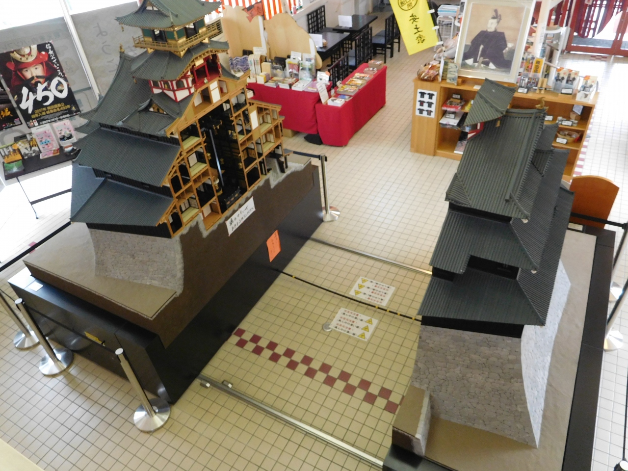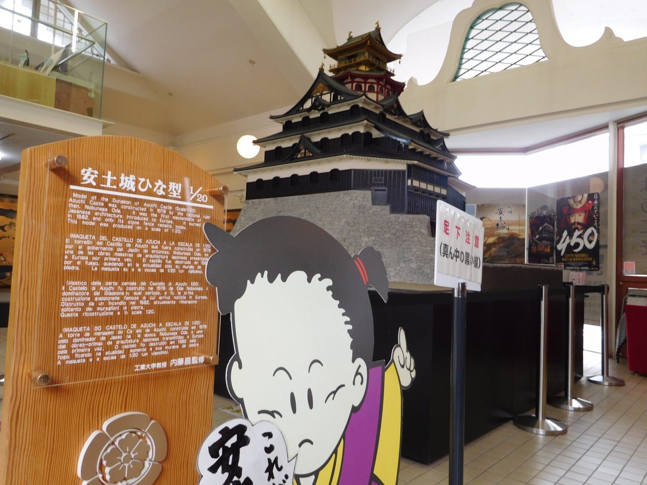 JR安土駅南広場にあり、近くには無料の駐車場もありました。資料館の中に入ると、中央に、精巧に1/20に復元された安土城の模型が展示されていました。模型を眺めていると、係員の人が来て、機械で動かし、お城を真っ二つに割るような形で、お城の内部も見せて頂けました。すごく細かく作られていて、織田信長の姿もありました。館内の階段を上って、2階からも見学できるようになっていました。他にも、屏風絵風の壁画や、展示品などがあり、なかなか見応えがあって、良かったです。